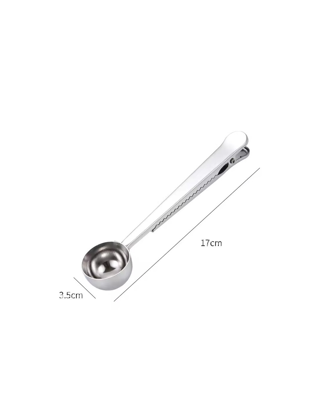Просто и интелигентно решение за ежедневното приготвяне на кафе. В лъжичката могат да се поставят точно 5 г кафе на зърна или 6-8 г смляно кафе, така че можете да премерите партидата, без да претегляте. В противоположния край има здрава щипка, която можете да използвате, за да затворите веднага торбичката. Изцяло неръждаемата метална конструкция е здрава, хигиенична и подходяща за ежедневна употреба в кухнята.
