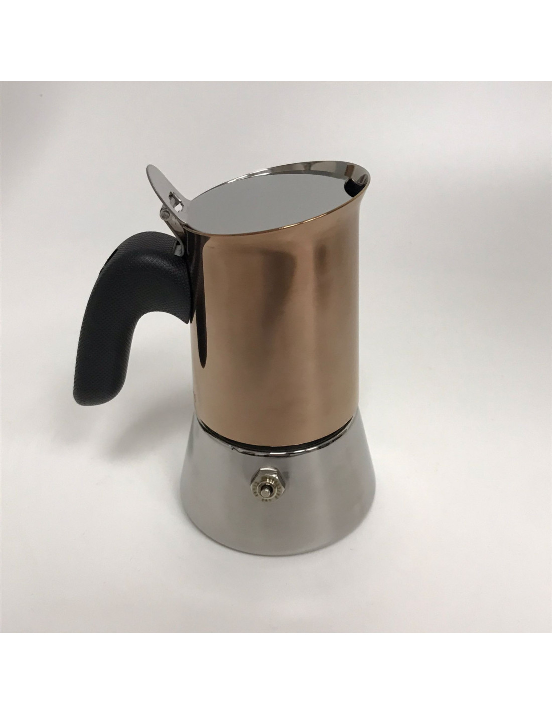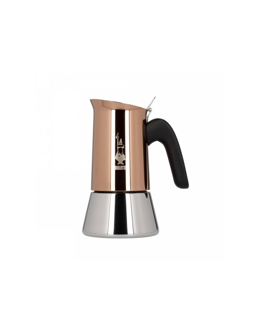 Изцяло неръждаема луксозна кана за мока Bialetti Venus Copper на италианската компания Bialetti за традиционно приготвяне на 2 чаши по-силно кафе (около 85 мл). Не е подходяща за индукция! Не е използвана - козметичен дефект на тръбата на фунията за кафе.