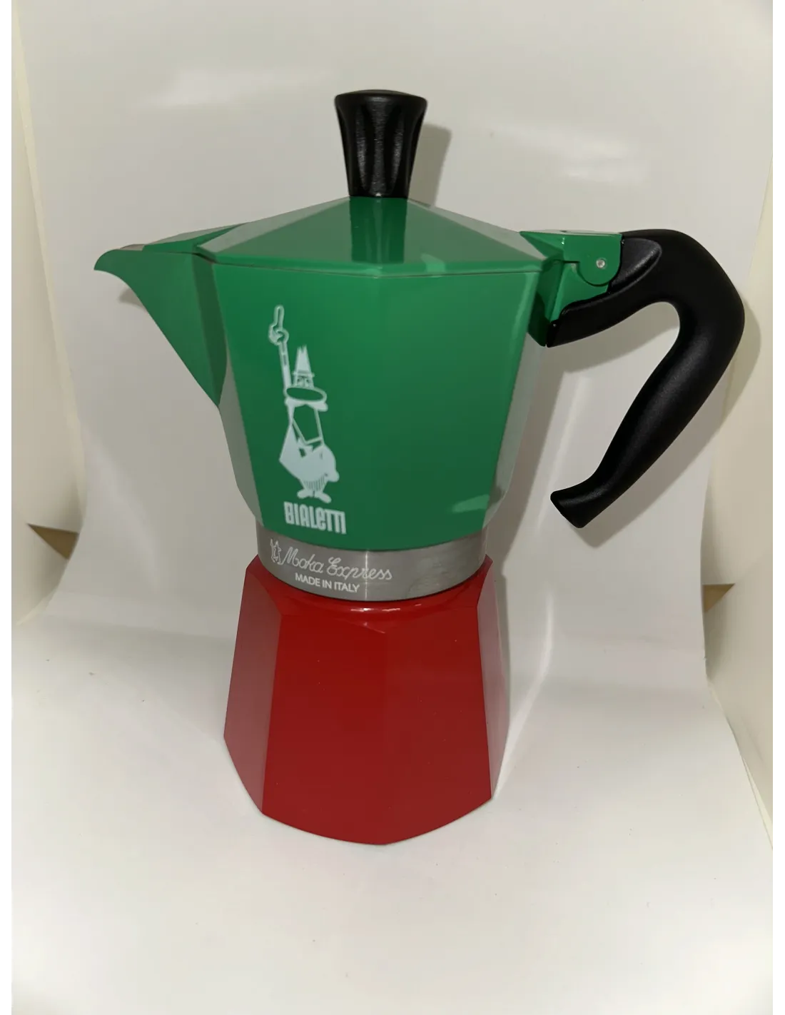 Легендарният мока кана Bialetti Moka Express на италианската компания Bialetti за традиционно приготвяне на по-силно кафе. С красив дизайн в зелено и червено, подходящ за 6 чаши, т.е. приблизително 270 ml.