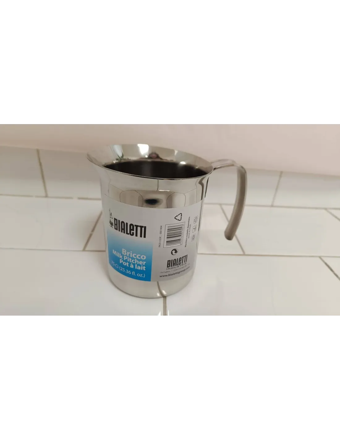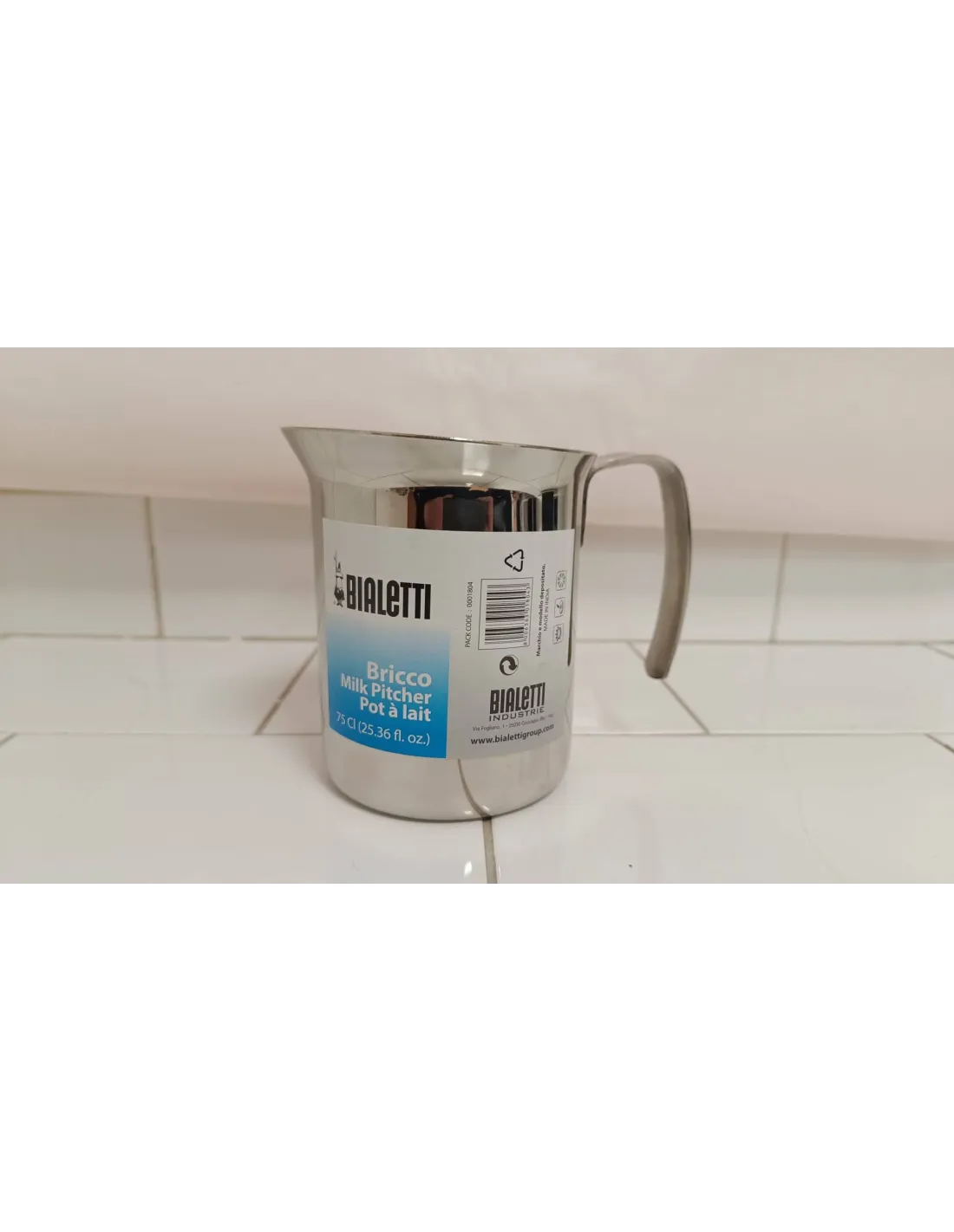 Професионална кана за мляко Bialetti от 100% неръждаема стомана с вместимост 750 ml. Чайникът е използван и без опаковка - отстъпка.