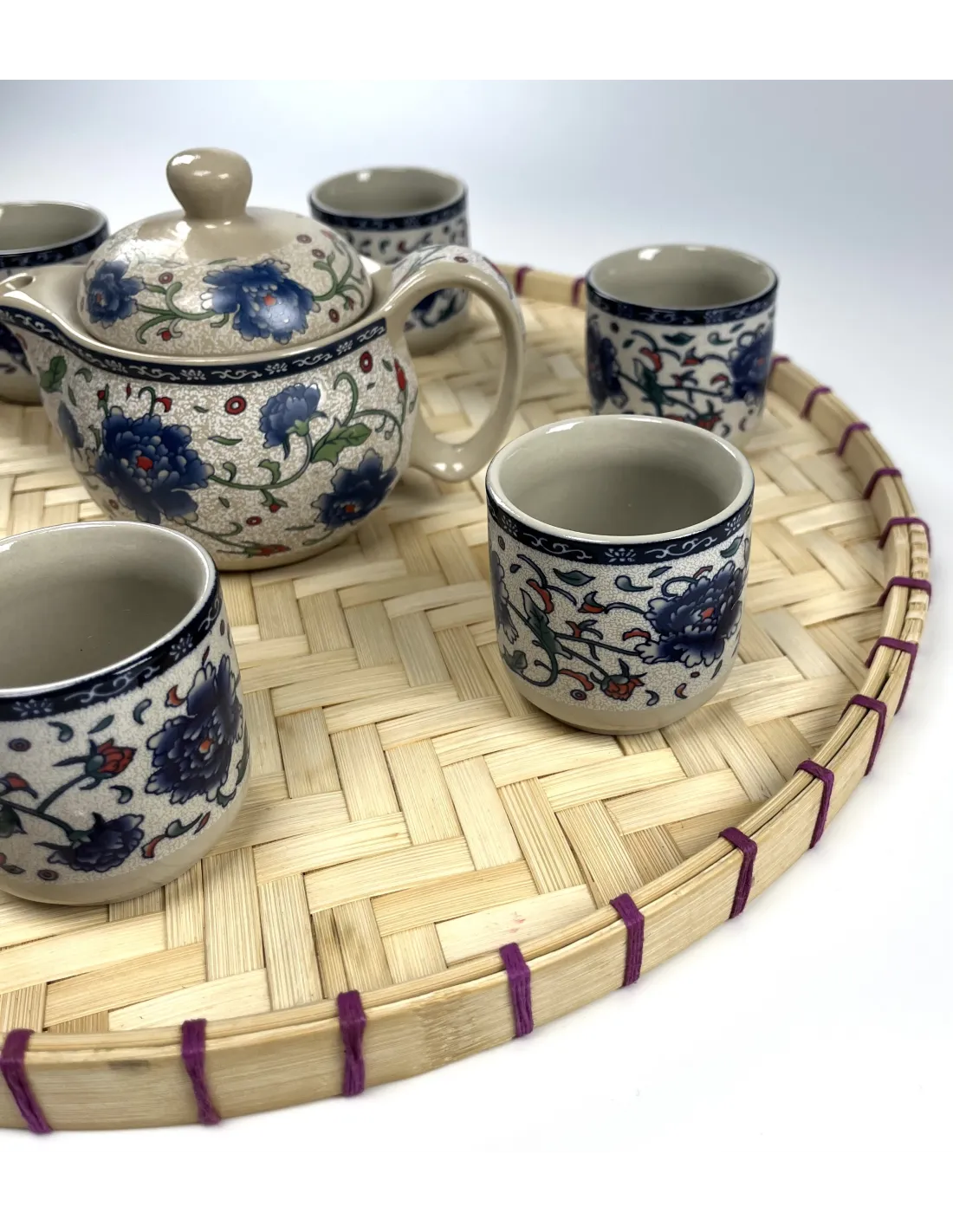Комплектът включва елегантен чайник с метална цедка, която улеснява запарването на чаените листа, без да оставя нежелани остатъци в чашата. Комплектът включва и 6 чаши в традиционен китайски стил, идеални за споделяне на чай с приятели или семейството.