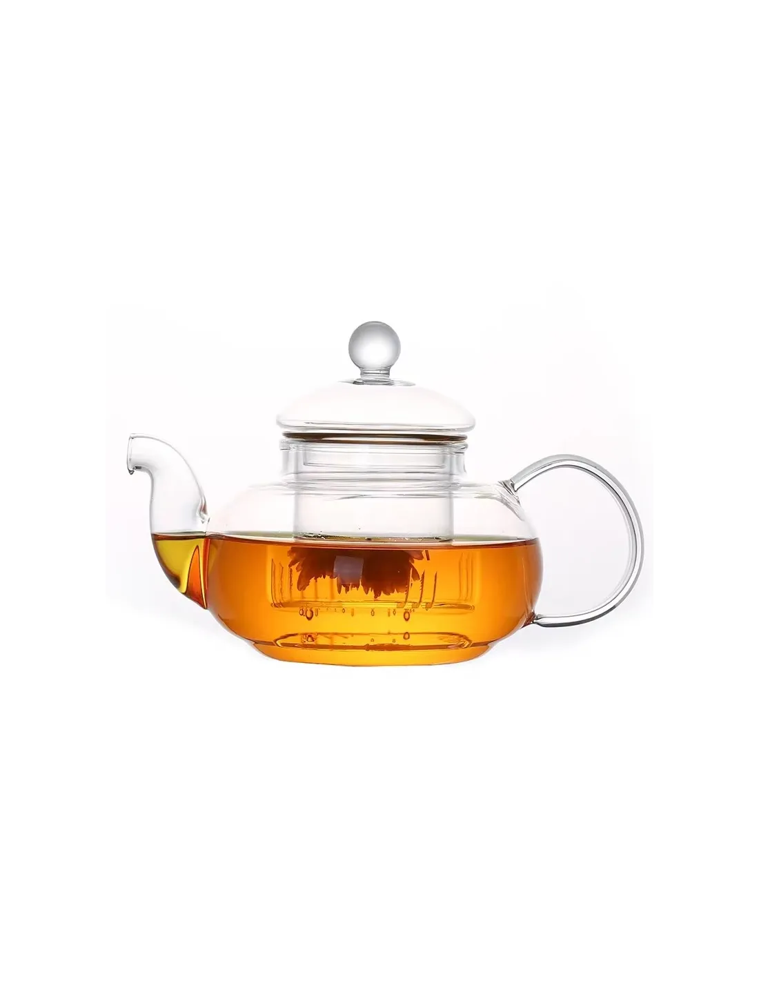 Стъкленият чайник от 240 ml е идеален за приготвяне и сервиране на по-малки количества чай. Той е оборудван с цедка, която осигурява перфектно запарване на чаените листа и лесно наливане без остатъци в напитката. Благодарение на прозрачния дизайн можете да наблюдавате процеса на запарване и да се наслаждавате на цвета на чая. Чайникът е не само практичен, но и елегантен аксесоар, който ще направи чаения ви ритуал по-приятен. Перфектният избор за отделни хора или за стилно сервиране на чай в по-малки групи.