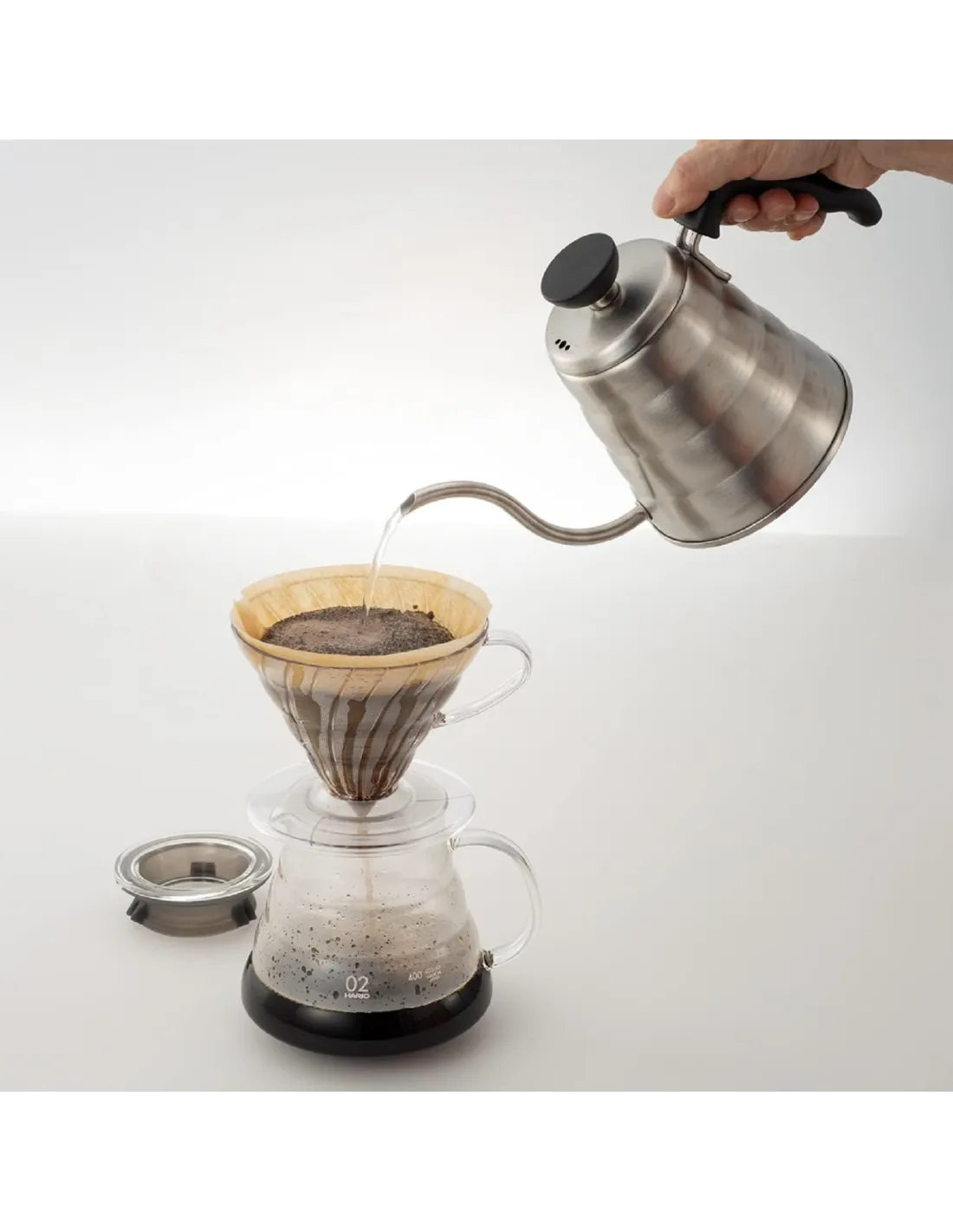 Невероятно елегантна, стилна и дизайнерска каничка Hario Buono 700 ml от японската марка Hario, специално проектирана за приготвяне на кафе с помощта на дрипер. При приготвянето на кафе прецизността е изключително важна. При наливането на водата важат както посоката, така и най-вече потокът вода. Ако излеете кафето с прекалено силен поток вода в дрипера, вкусът няма да бъде добър.