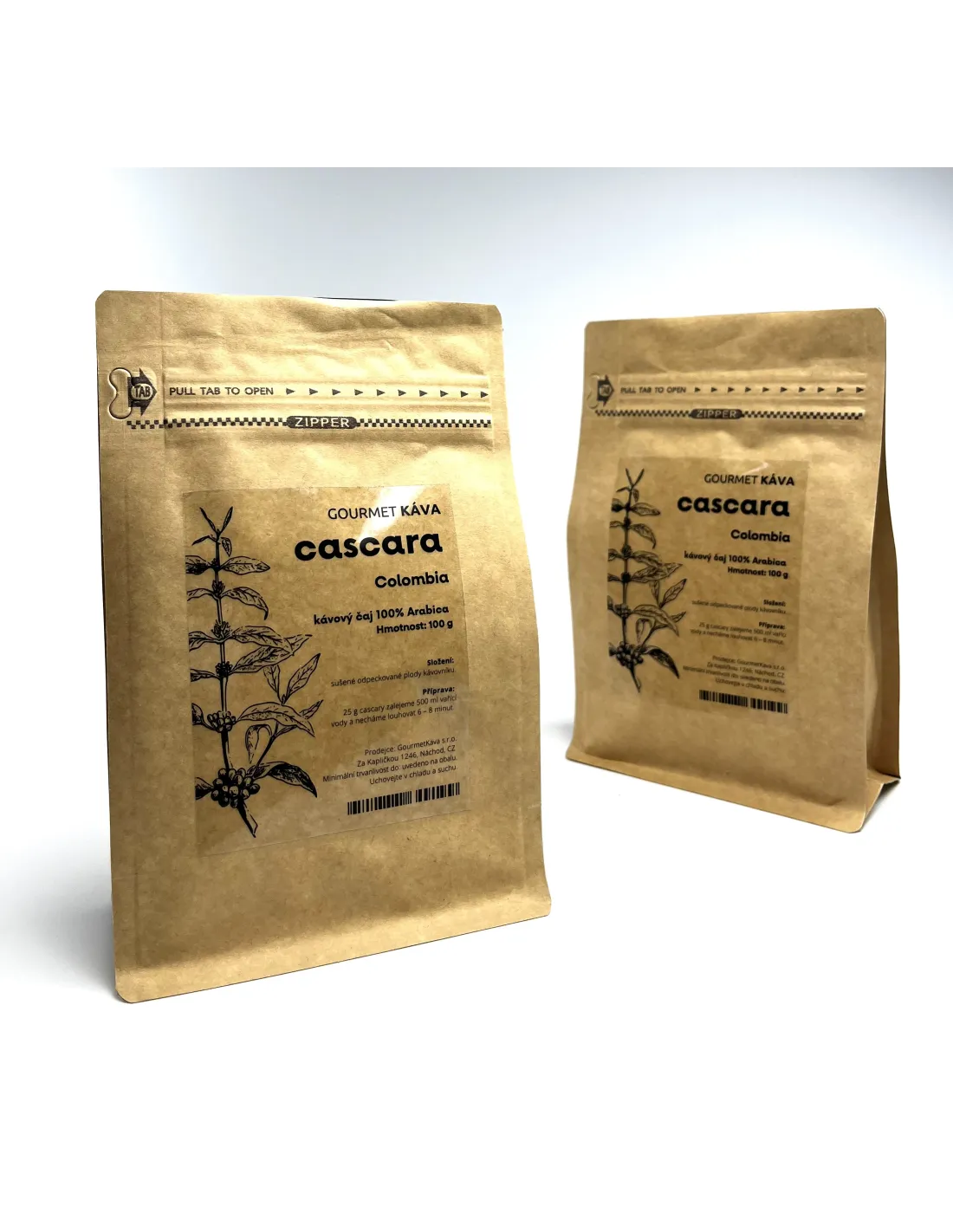 Описание: Cascara (от испански - кори) еплодов чай, приготвен от изсушени кори на кафеени череши. Според наличните източници този"кафеен чай" е най-ранната кафена напитка, правена някога от плодовете на кафееното дърво. В Йемен той се приготвя още през IX в. под името кешир (qishr). Зърната на кафето, както ги познаваме тук, са изпечени семена, откъснати от кафеените череши, които узряват на кафеените дървета. Във фермите люспите с остатъците от плодовата пулпа се използват като естествен тор. Когато са изсушени, те миришат на сладки стафиди, а напитката най-много прилича на чай от шипки.