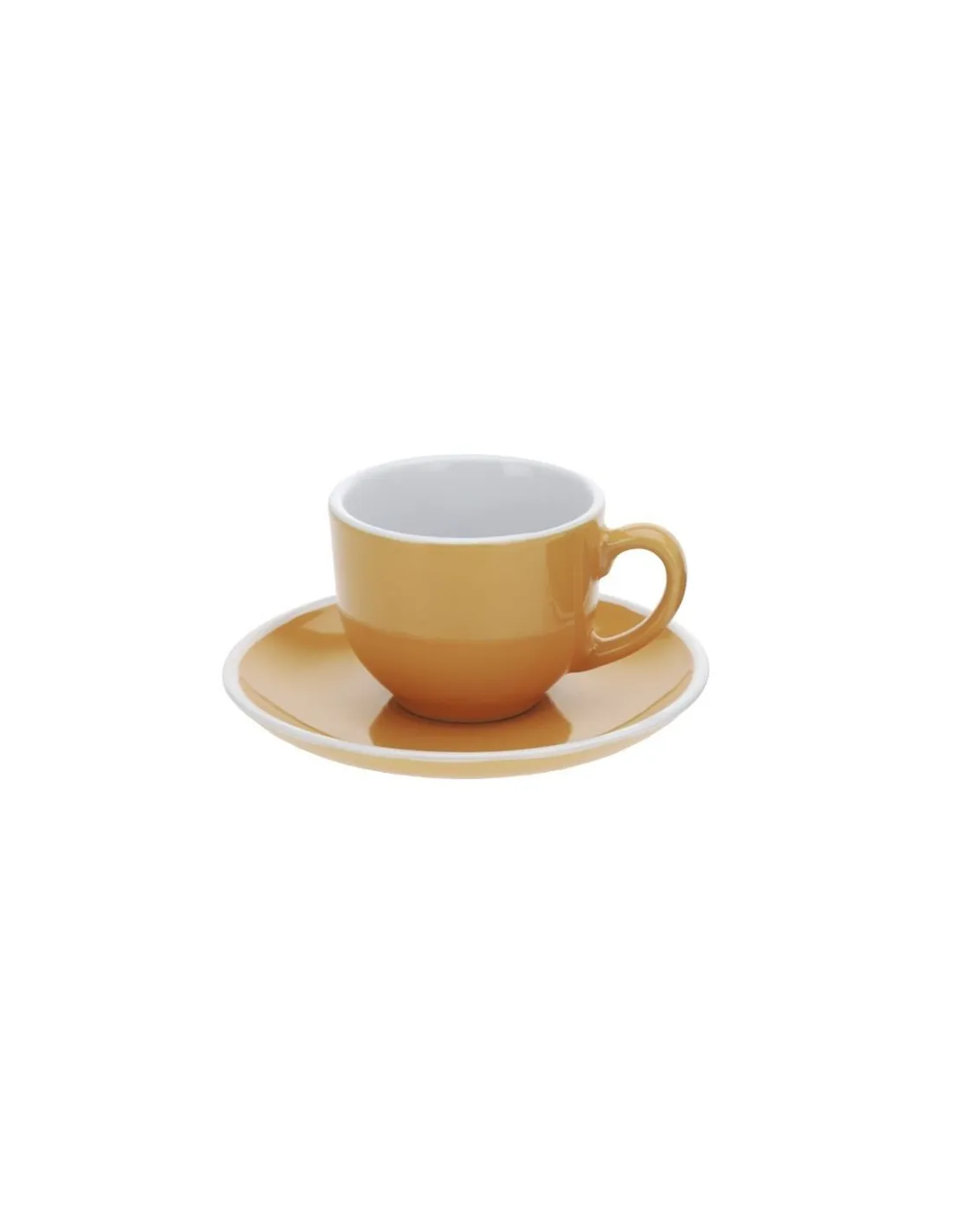 Керамична чаша за еспресо с обем 90 ml, подходяща за класическо или двойно еспресо. Включва чинийка. Цвят: оранжев.