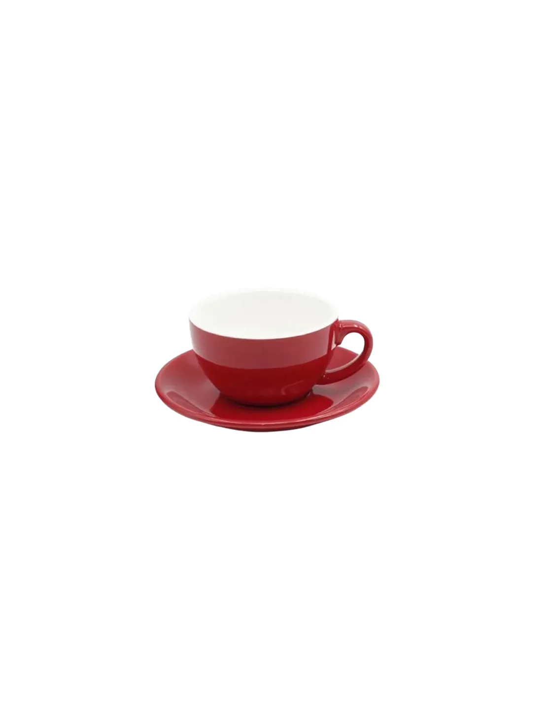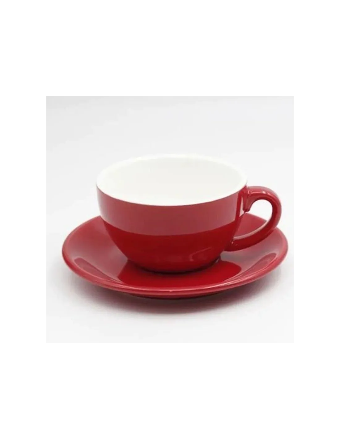 Порцеланова чаша за капучино с обем 200 мл. Включва и чинийка . Цвят: червен .
