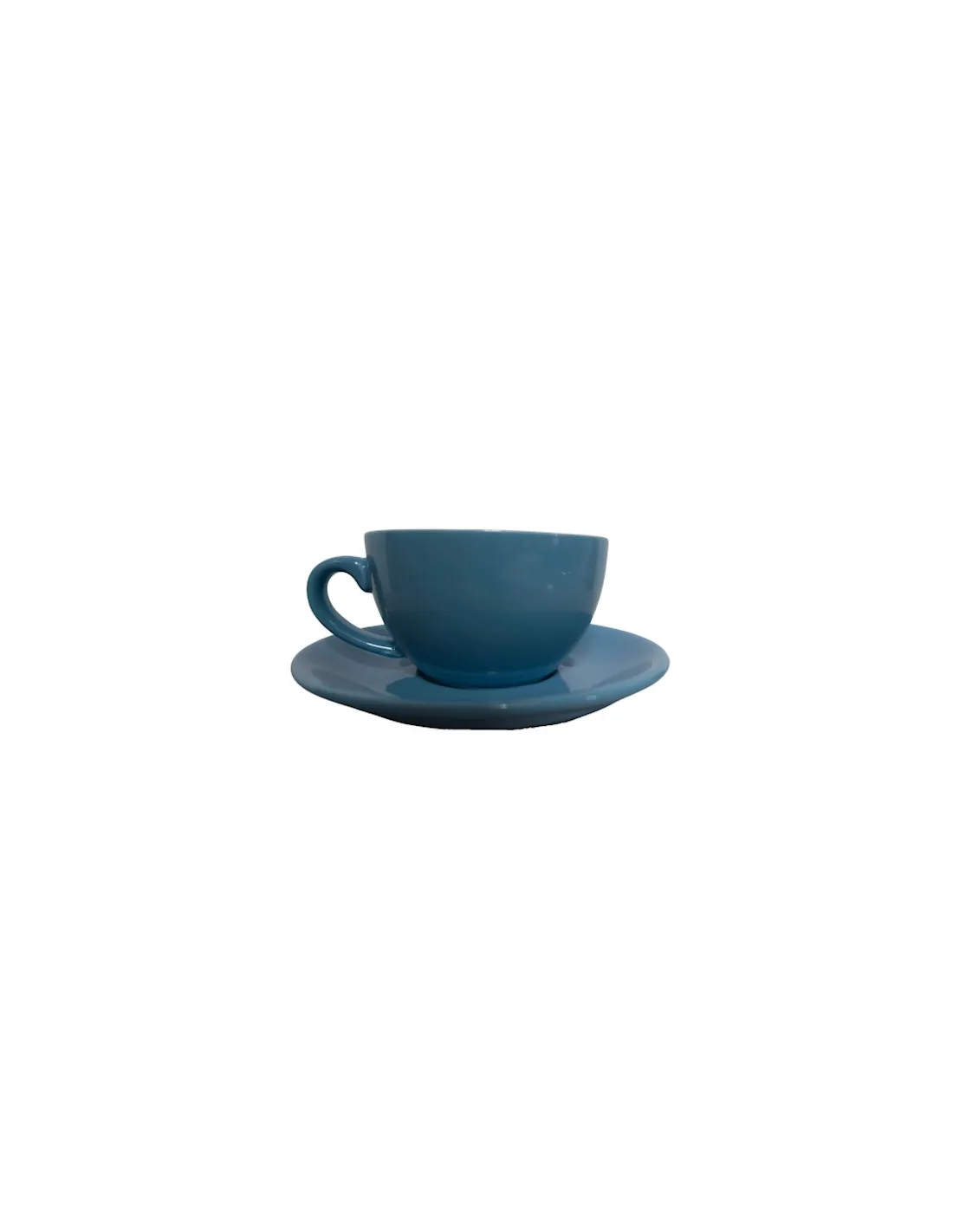 Порцеланова чаша за капучино с обем 200 мл . Включва и чинийка . Цвят: небесно синьо .