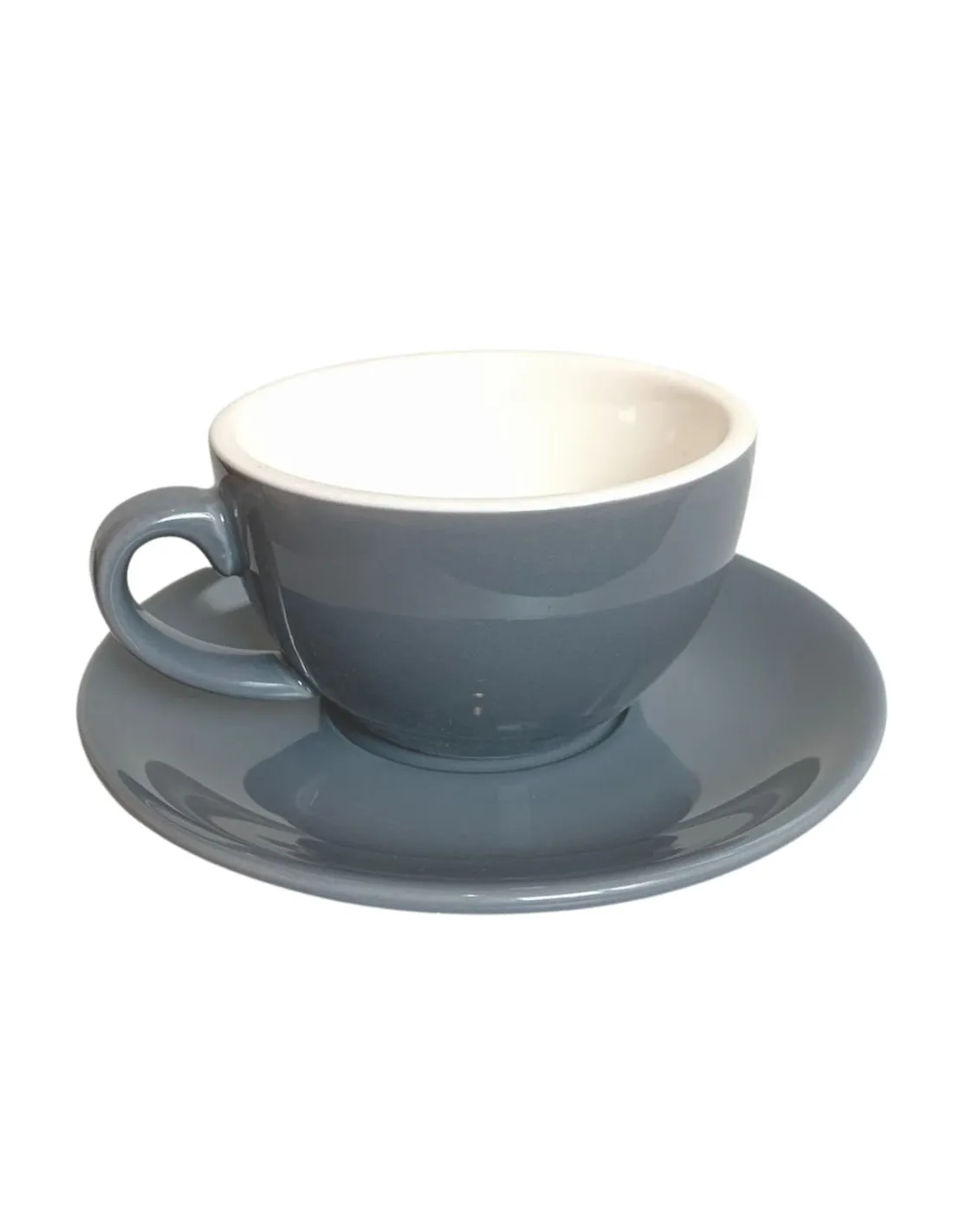 Порцеланова чаша за капучино с обем 200 0мл . Включва и чинийка . Цвят: сив .