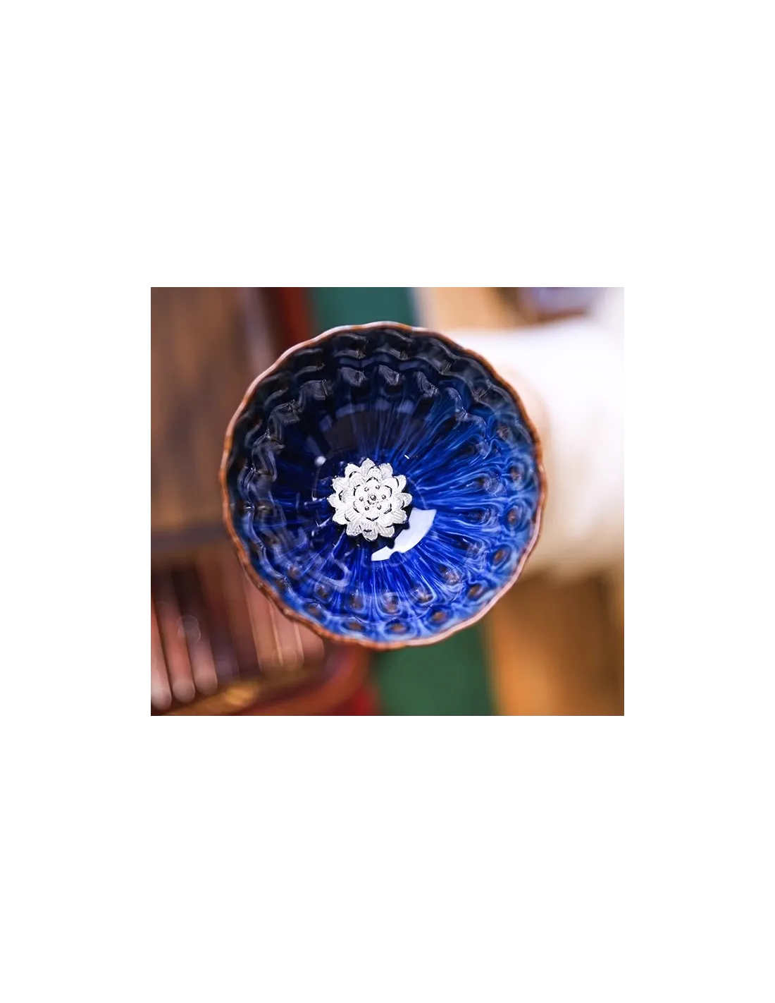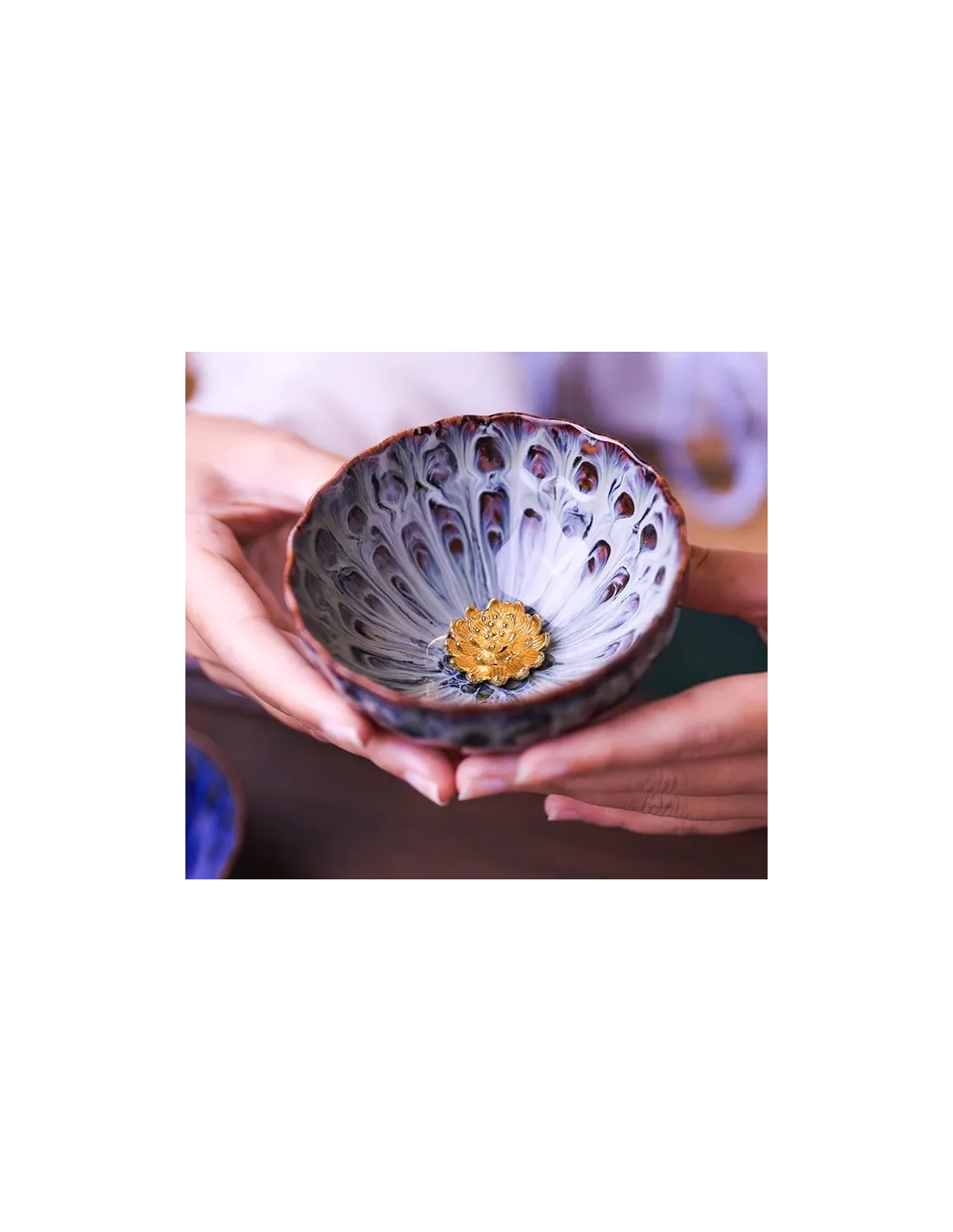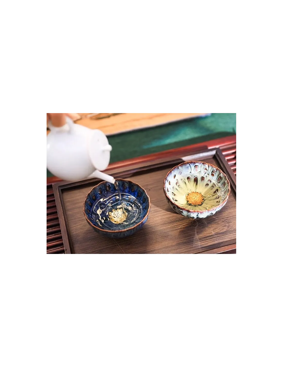 Стилен комплект чаши Kaffia Blossom с ръчно изработен дизайн, вдъхновен от флорални мотиви. На дъното на всяка чаша има нежен мотив лотос , който се откроява най-добре при наливане на светъл или бистър чай.