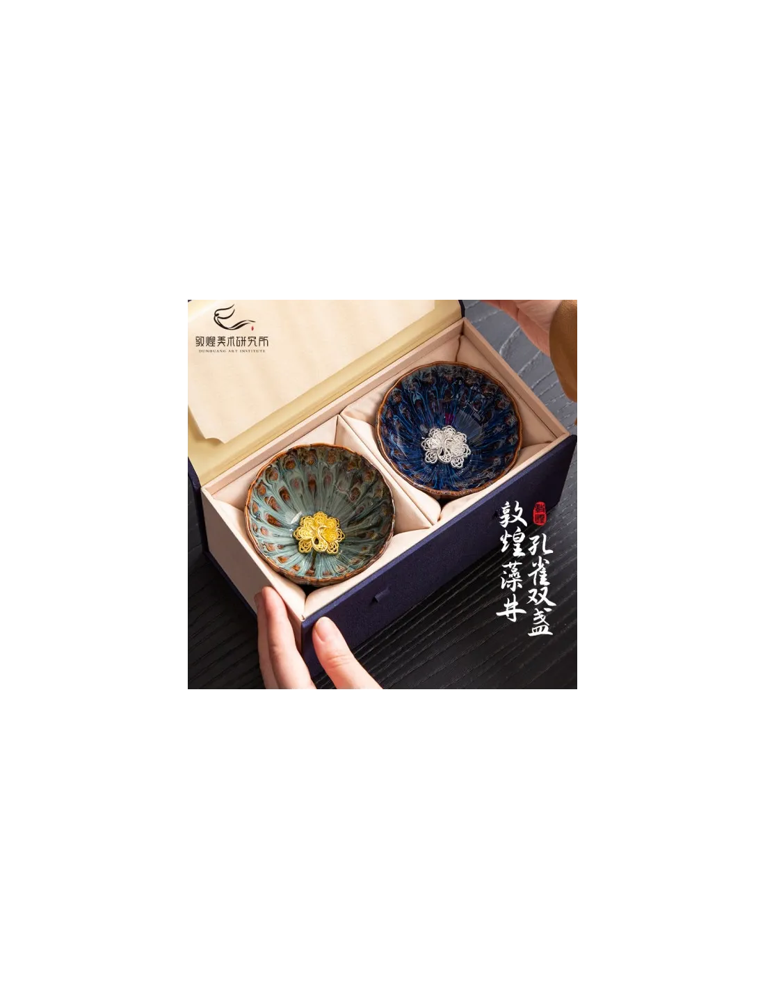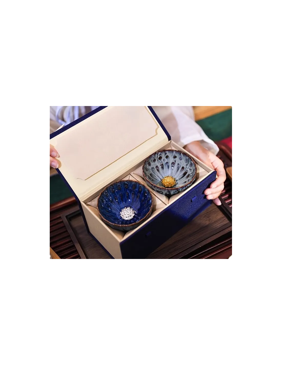 Елегантен комплект от две чаши Kaffia Blossom в китайски стил, опаковани в луксозна подаръчна кутия.