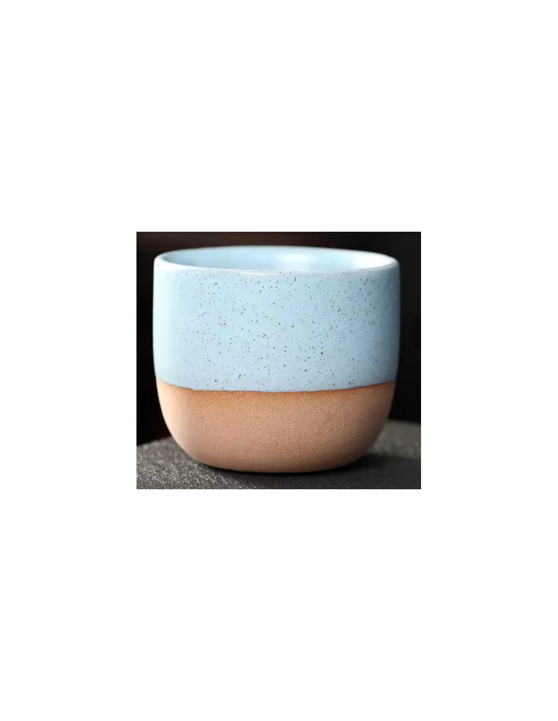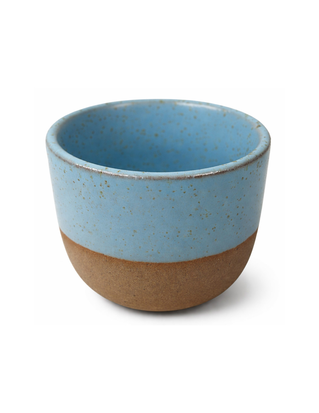 Елегантна керамична чаша без дръжки с деликатна поръсена глазура. Тя пасва удобно в ръката и е идеална за еспресо, лунго или по-малка порция чай.
