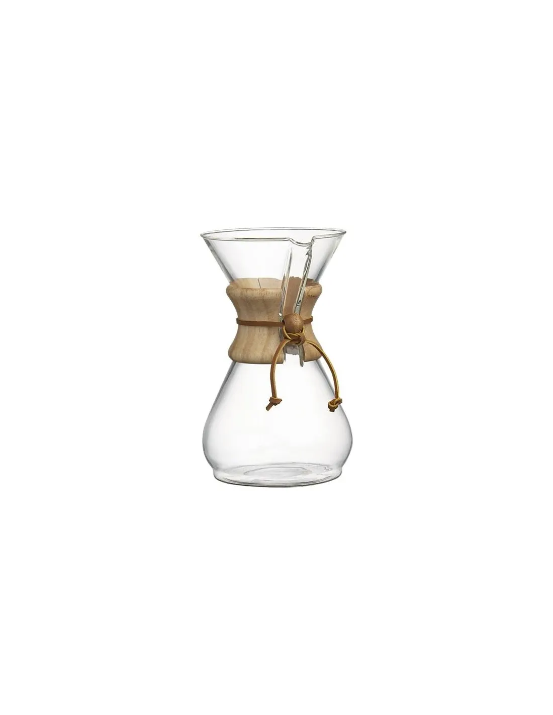 Легендарната кафемашина Chemex CM-8A Pour Over 8 за приготвяне на фантастично капково кафе. Вместимост 1,2 л. Дървена дръжка.