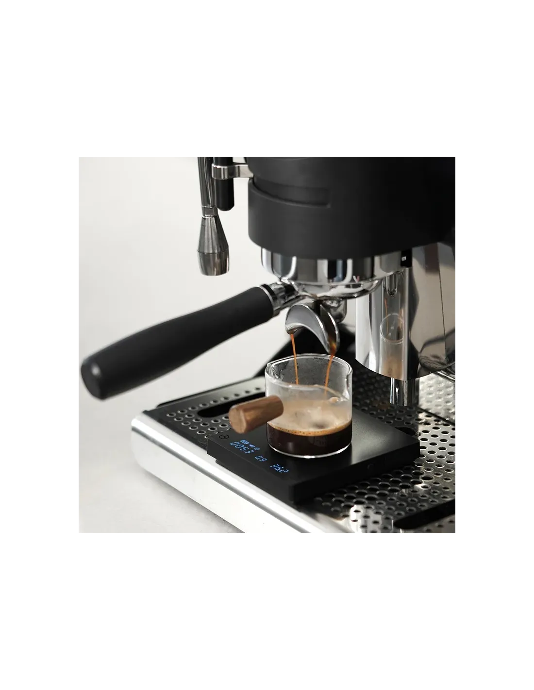 Минималистичен, елегантен и модерен външен вид на везнатаTimemore Mini Espresso, с висококачествени материали и внимание към всеки детайл. Тялото е изработено от гладка, матова черна пластмаса - данните са невидими, докато не докоснете панела и той не светне. Управлението на везната се осъществява с два бутона на сензорния панел. Горната част на везната е водоустойчива. Както и USB-C портът за зареждане, благодарение на силиконовата водоустойчива капачка.