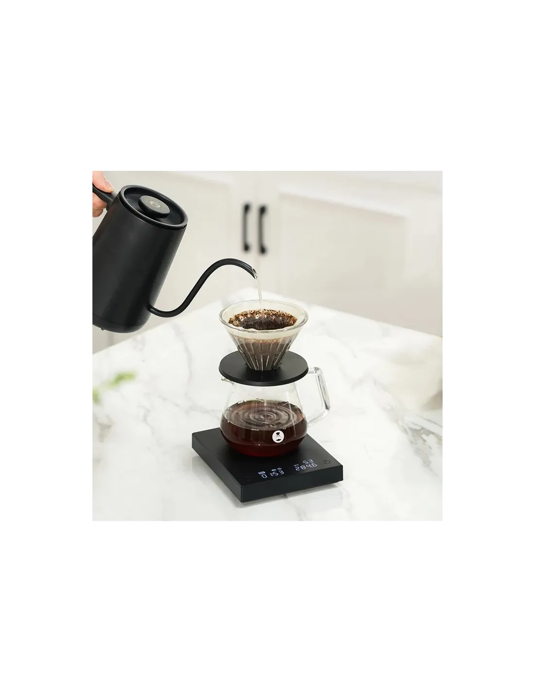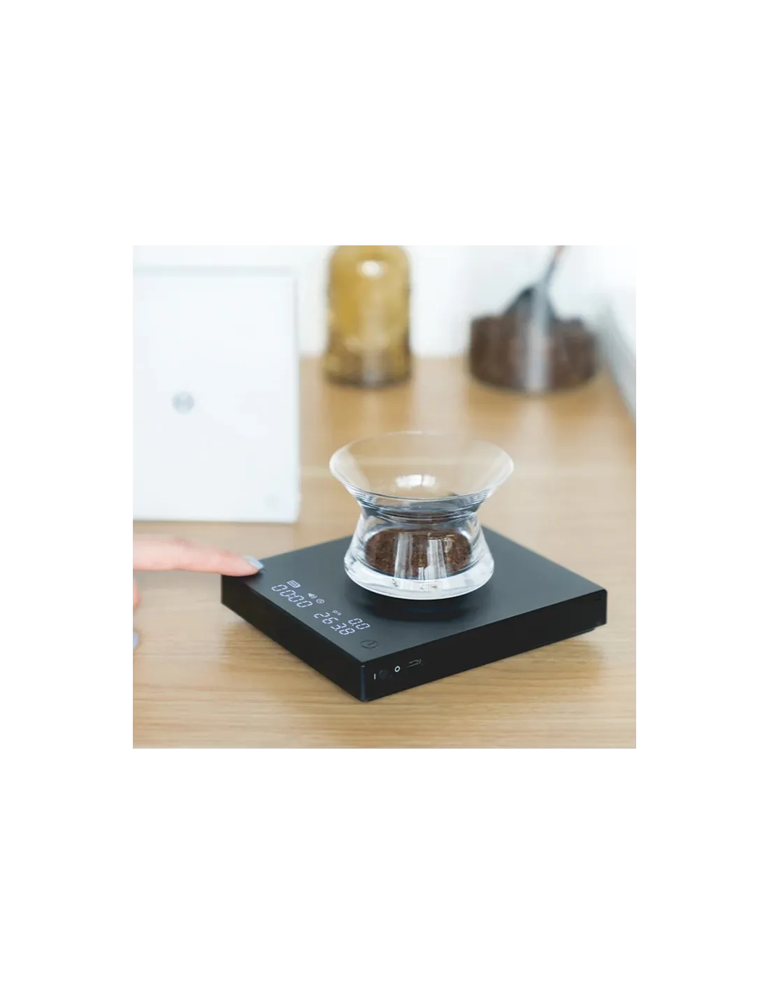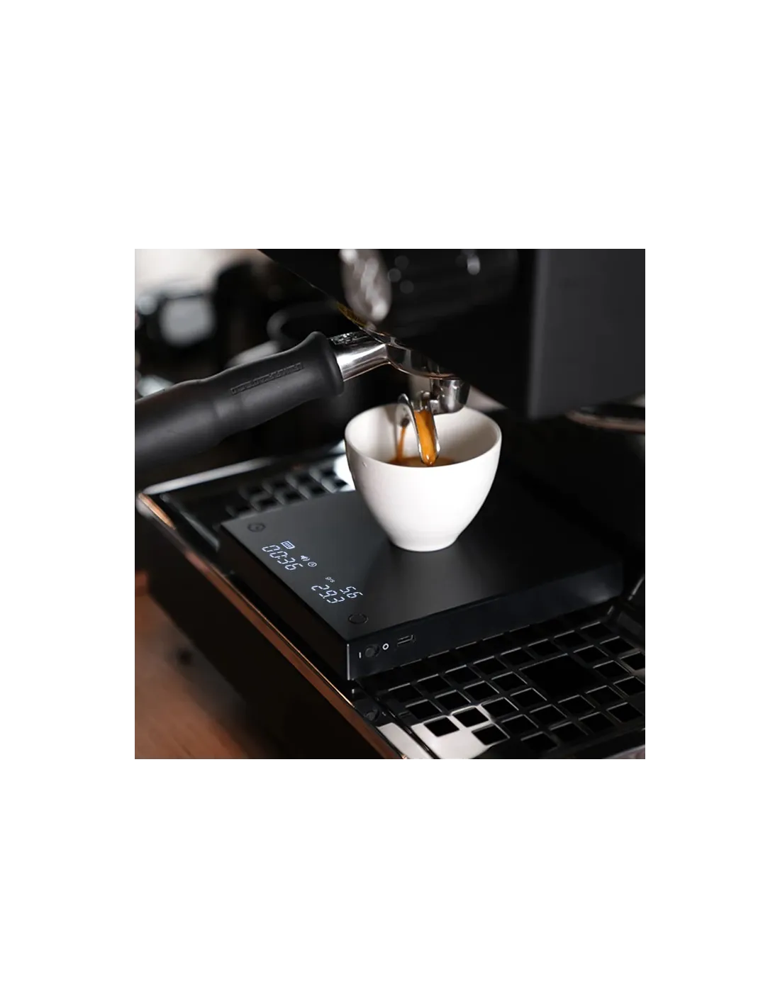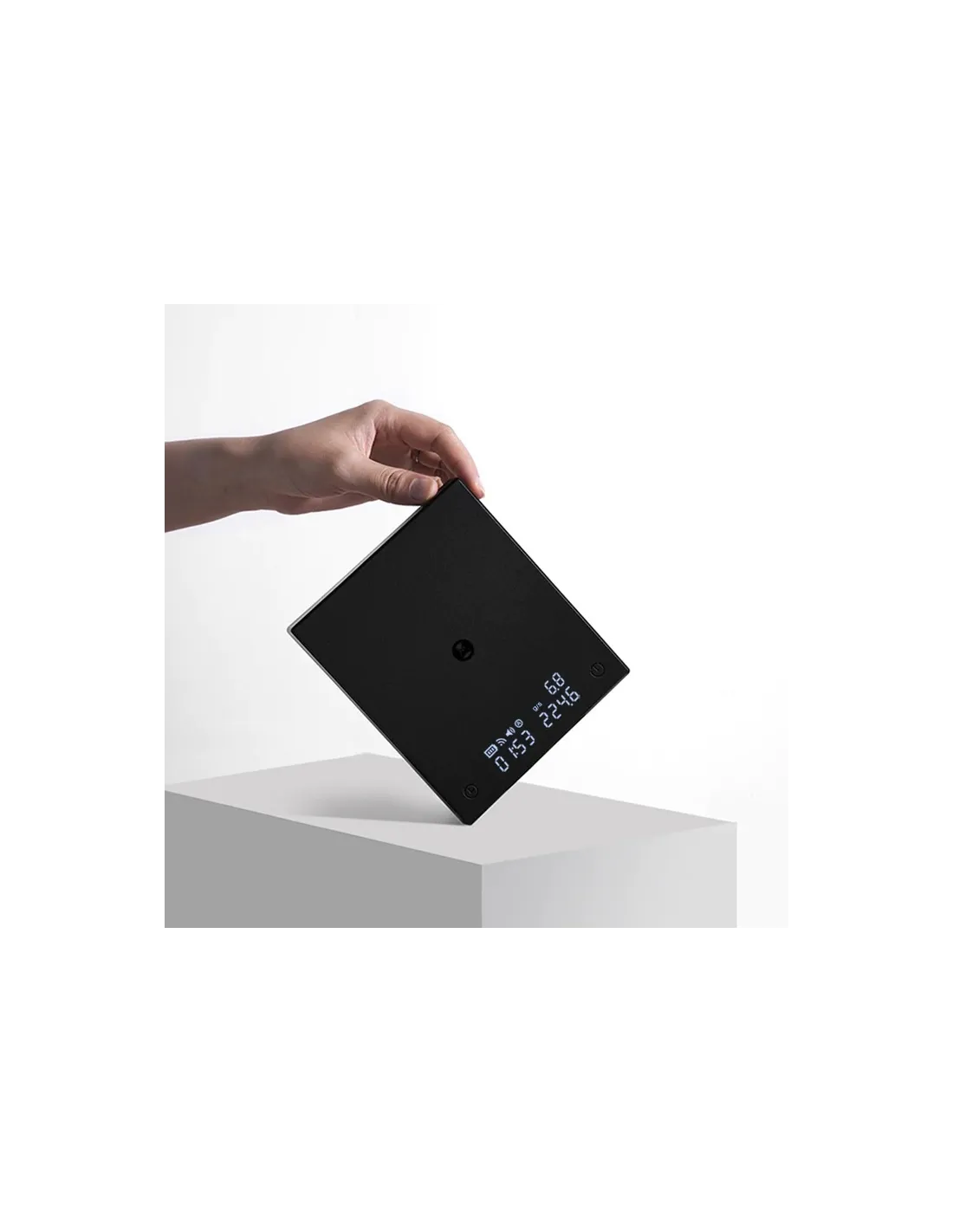 Новият модел на стилната цифрова везна Timemore Mirror Basic PRO в черно с минималистични характеристики и елегантен дизайн е идеалният помощник за домашно и професионално приготвяне на еспресо или за методи за наливане, като Chemex, dripper или AeroPress.