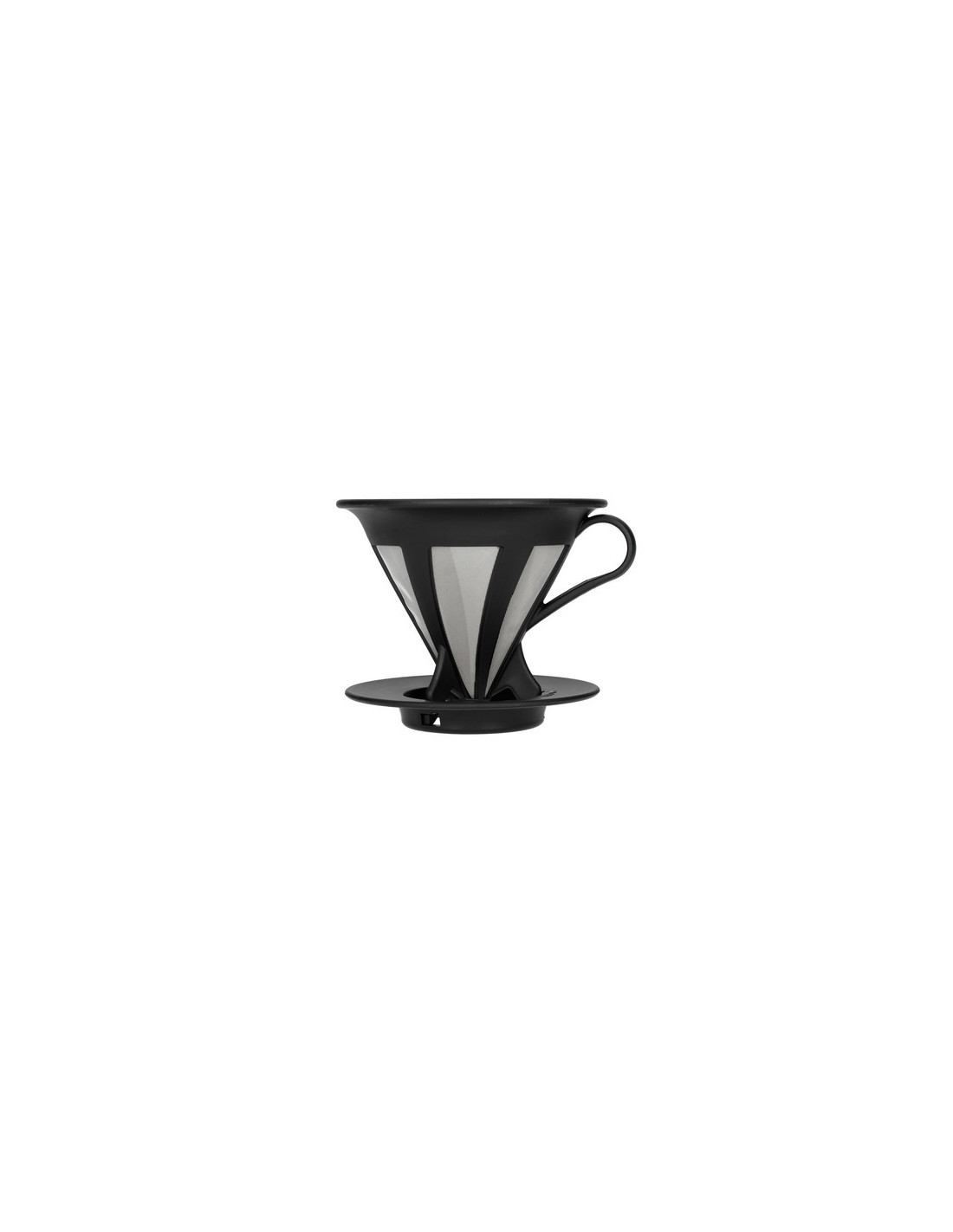 Пластмасовият капкомер Hario Cafeor съчетава японска прецизност, лекота и лекота на приготвяне. Благодарение на цедката от неръждаема стомана той не се нуждае от хартиени филтри и ви позволява бързо и чисто да приготвите една или повече порции кафе с пълен вкус и аромат. Идеалният избор за тези, които искат да открият магията на алтернативните методи за приготвяне на кафе.