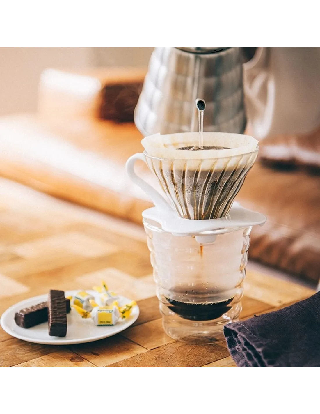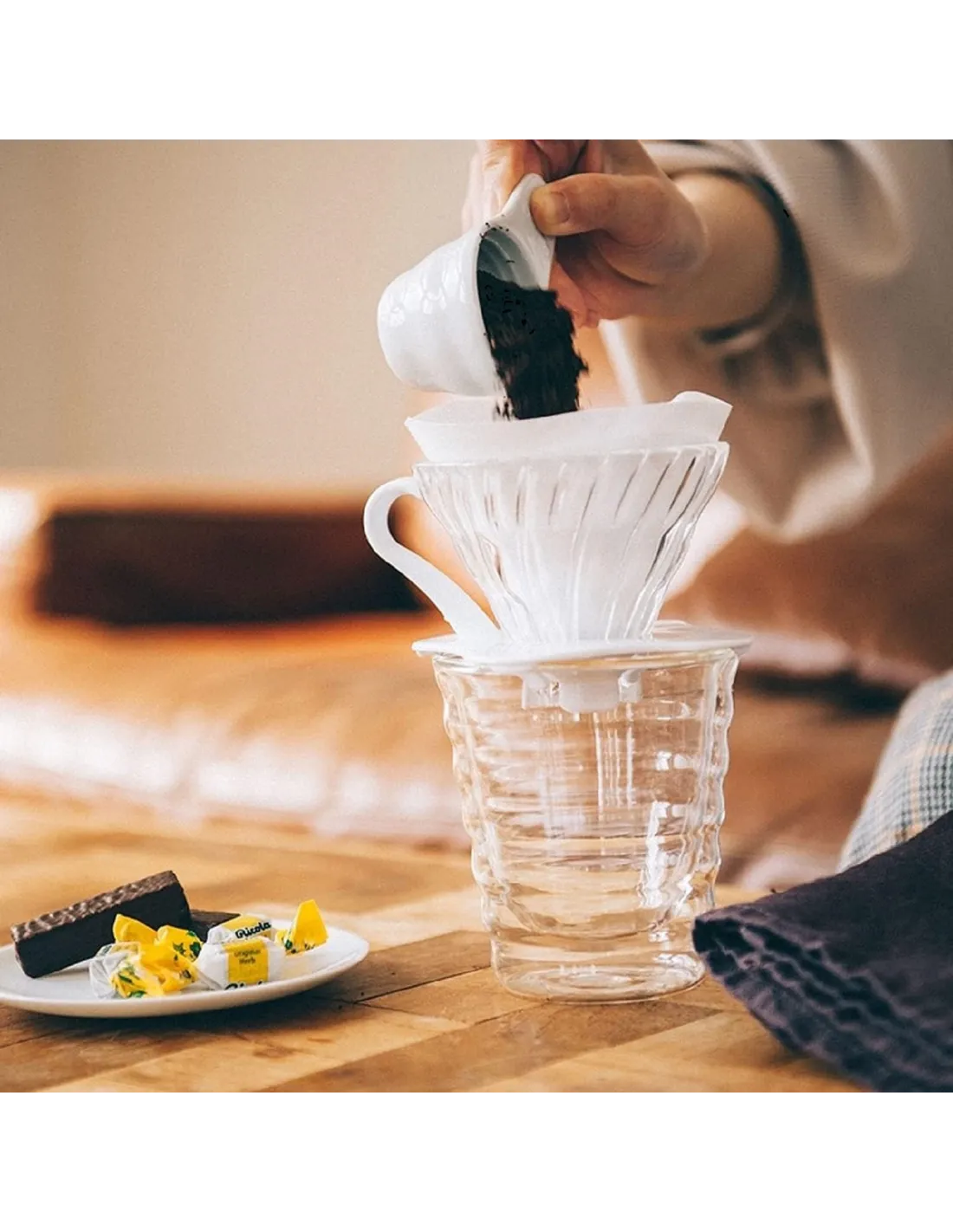 Стъклен дрипер Hario V60 за перфектно приготвяне на 1-2 чаши прясно филтърно кафе.