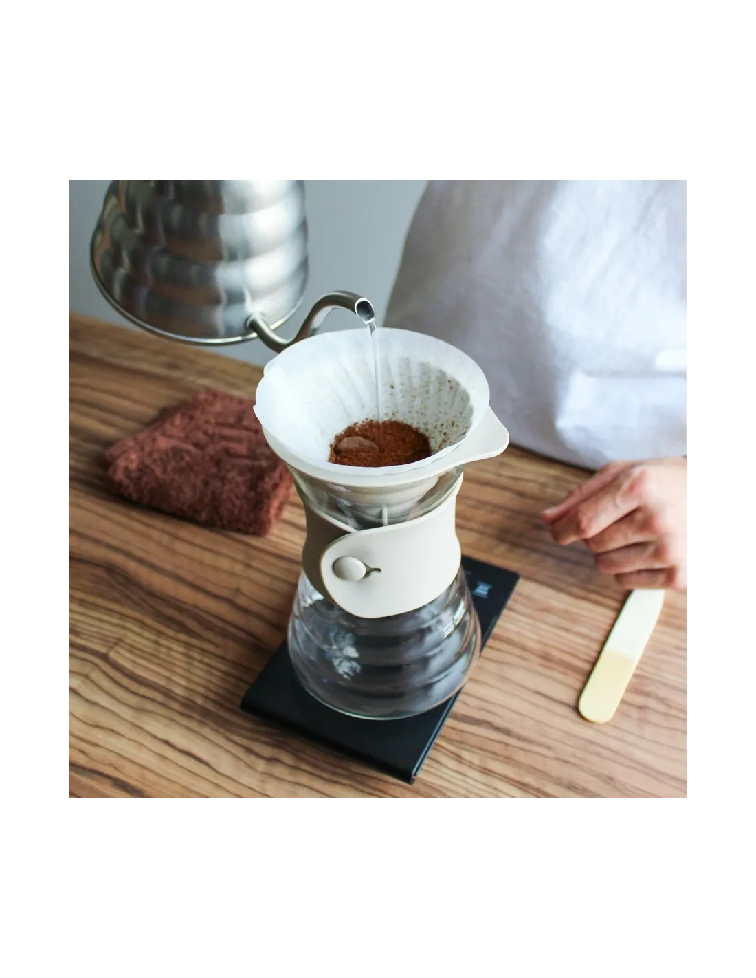 Декантерът за капково кафе Hario V60 от 700 мл съдържа всичко необходимо за перфектно филтърно кафе.