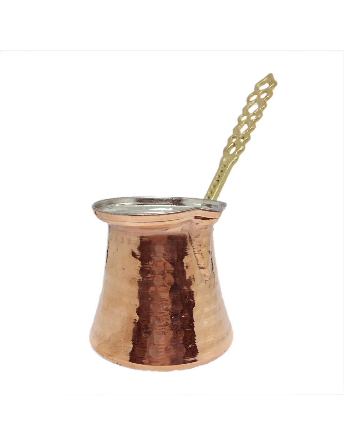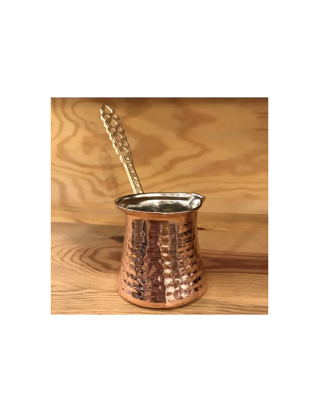Материал: мед, калай, дръжка от алуминиева сплавОбем: 180-200 мл (ръчна изработка, размерът може да се различава леко при отделните бройки)Диаметър на дъното: около 7 смСтрана на произход: Турция