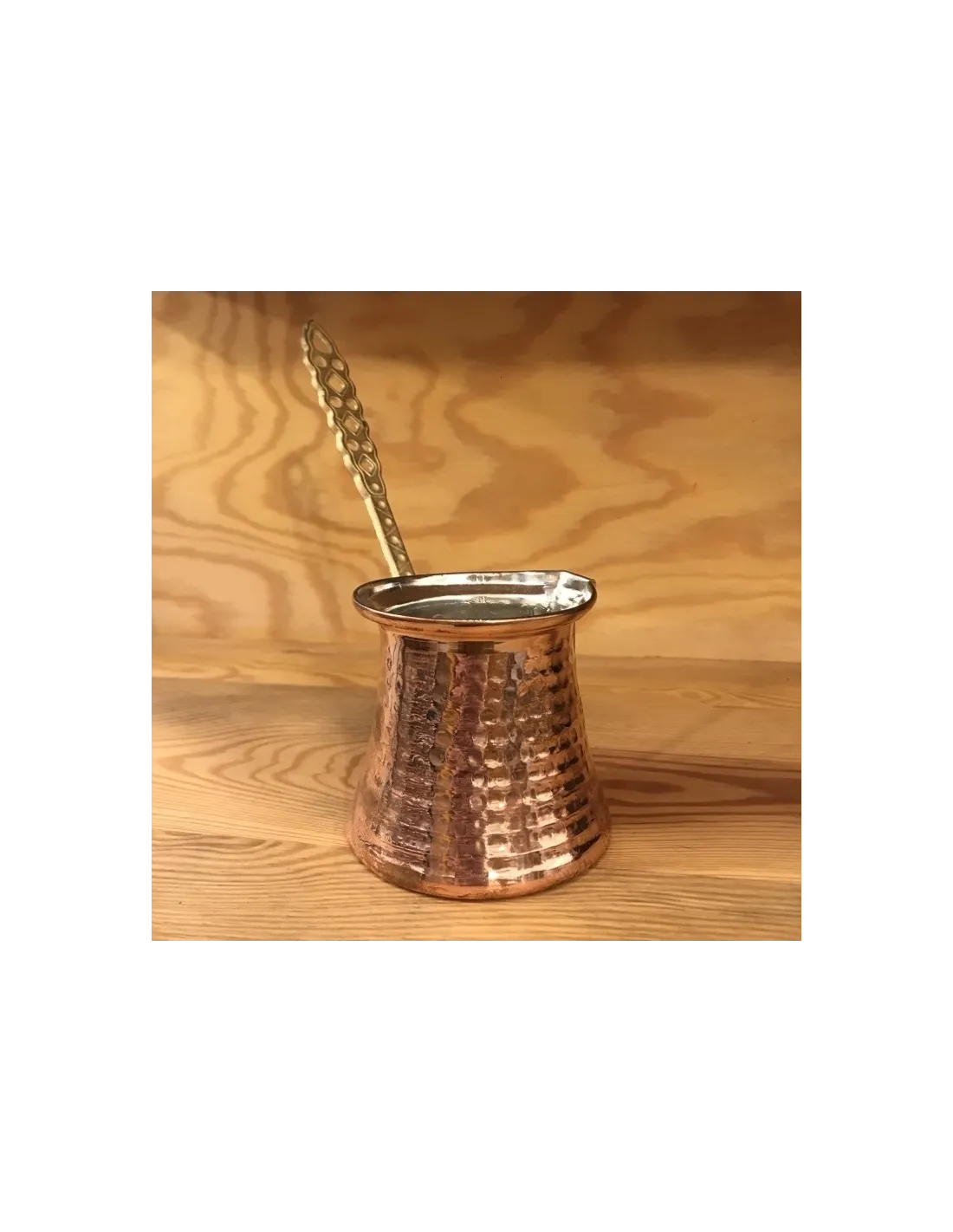 Ръчно изработена медна джаджава направо от турската провинция. Джазвата е изкована по традиционния занаятчийски метод.