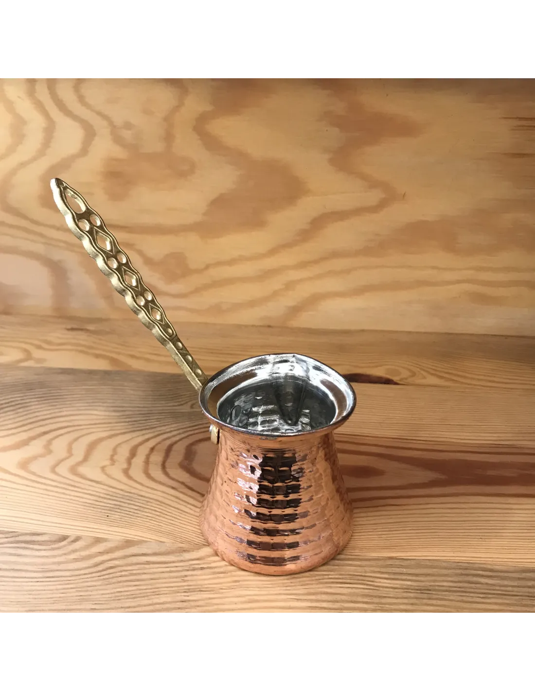 Ръчно изработена медна джаджава направо от турската провинция. Джазвата е изкована по традиционния занаятчийски метод.