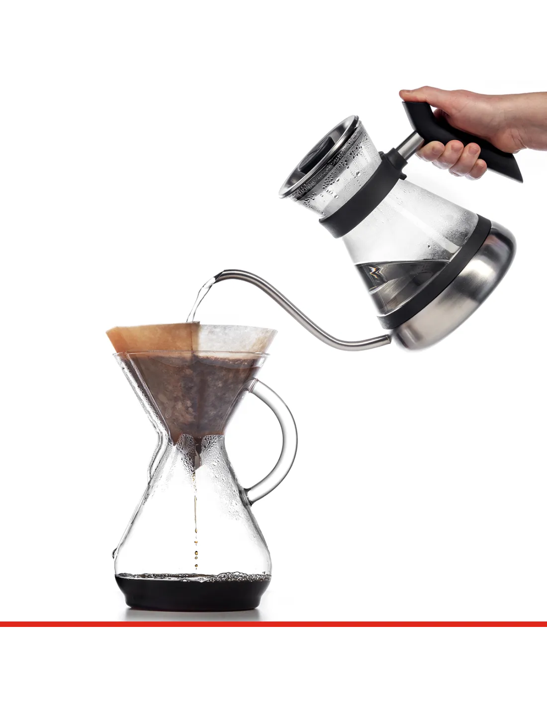 Уникална стъклена кана с тесен чучур, подходяща за филтърно кафе. Чайникът работи с индукционно нагряване. Капацитет: 1,2 л.