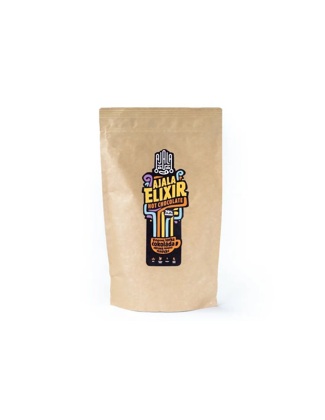Ajala Elixir съдържа чист 70% шоколад Ajala, който е направен от подбрани, етично закупени какаови зърна с органично качество и тръстиков сок. Резултатът е изключително богат и засищащ вкус .