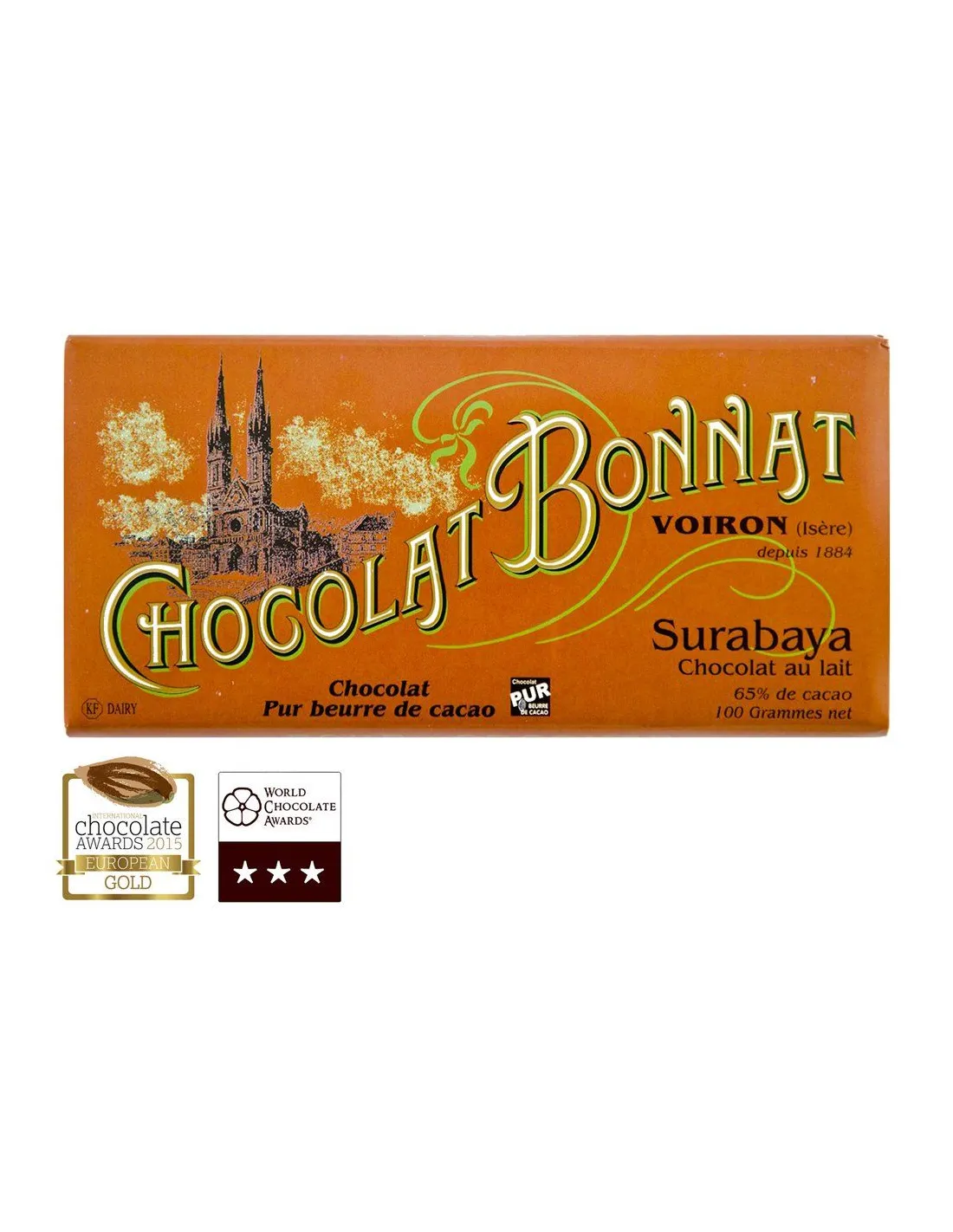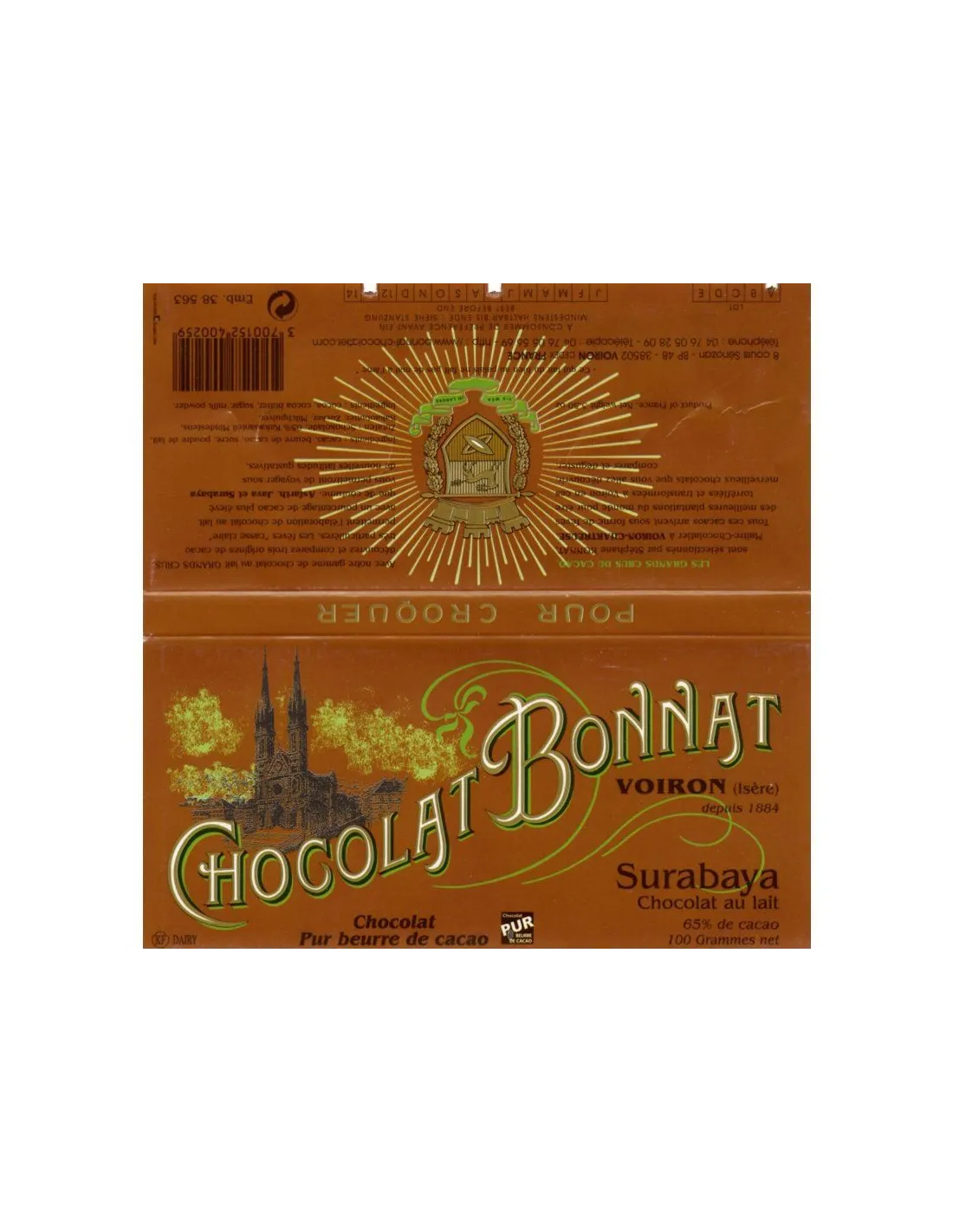 Млечен шоколад с високо съдържание на какао - 65% - приготвен от какаови зърна, отглеждани в района на Сурабая на източния остров Ява в Индонезия. Консистенцията на шоколада е гладка, а вкусът му е изненадващо богат и интензивен с плодови нотки на смокини и фурми.