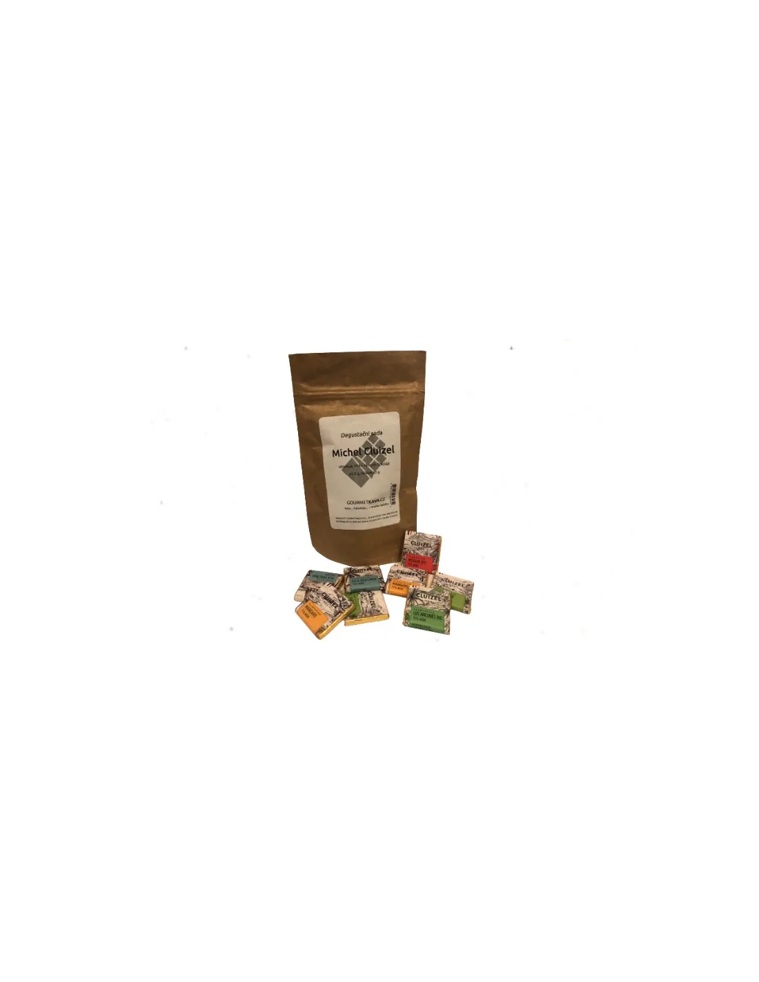 Дегустационен комплект за запознаване с плантационните шоколади Michel Cluizel Premier Cru. Съдържа: 10 индивидуално опаковани квадратчета от 6 сорта.