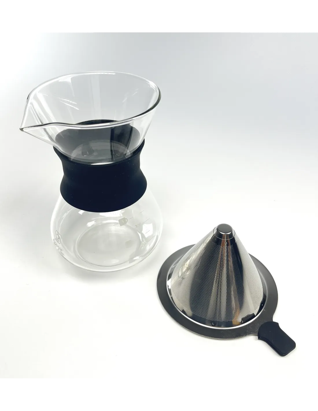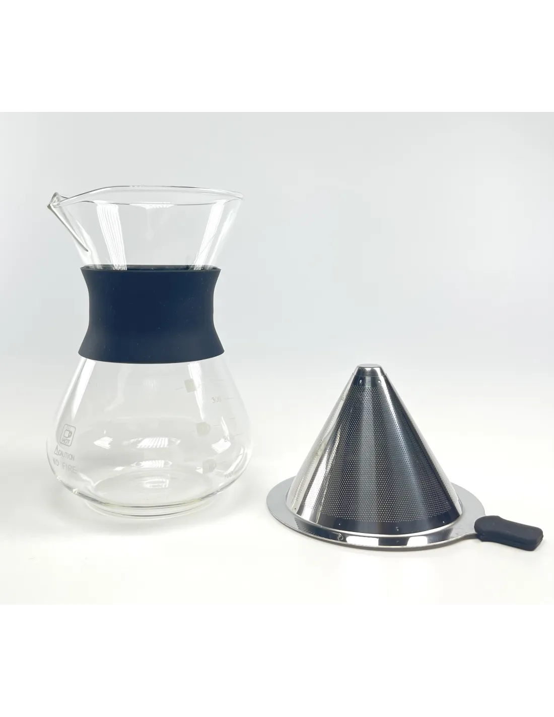 Декантерът Kaffia Kone е снабден с фин метален филтър, от който извлеченото кафе прелива директно в кана, от която може да се сервира директно. Той е и интересна алтернатива за тези, които не харесват хартиените филтри в дрипъра, което ще бъде както много по-икономично, така и по-екологично решение. Освен това металният филтър пропуска повече от фините кафеени масла в сравнение с други филтри, което придава на кафето по-съдържателна плътност.