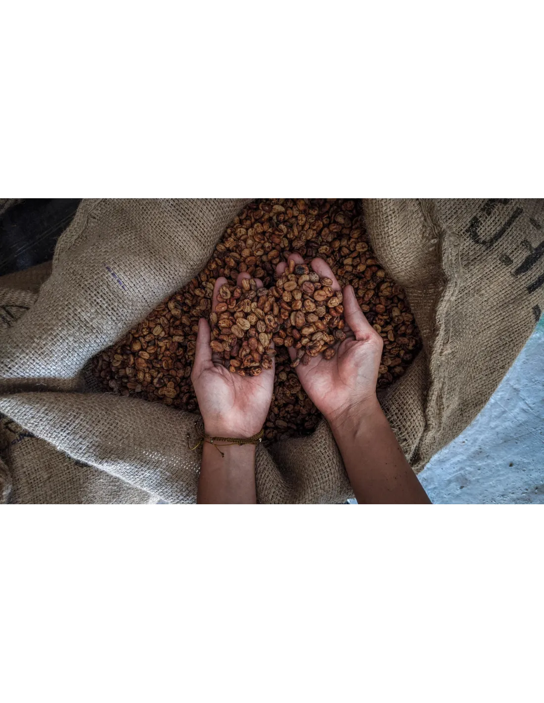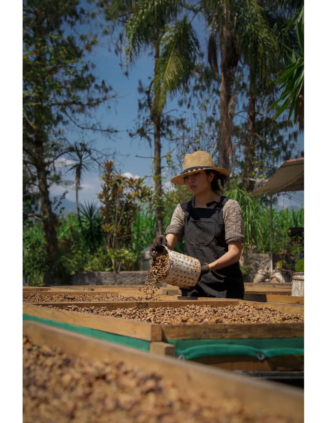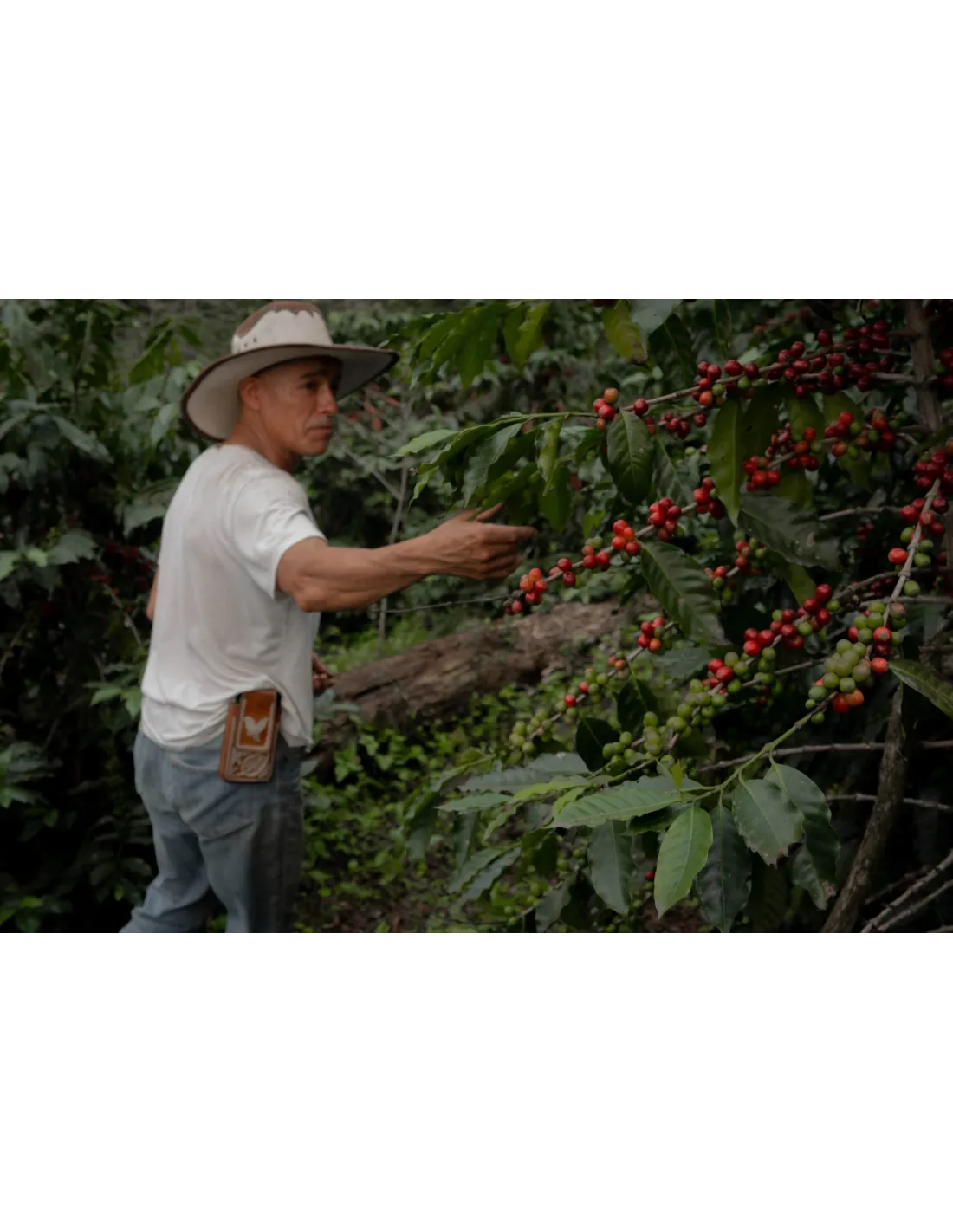 Тази партида, обработена по метода Red Honey, се състои от костарикански и колумбийски сортове. Черешите се събират селективно и се депулпират, преди да се поставят върху издигнати африкански легла, за да се изсушат на слънце. Процесът Red Honey оставя върху зърната слой слуз, който се карамелизира на слънцето, като придава дълбочина на вкуса и сладост на кафето. Времето за сушене се следи внимателно и зависи от аромата и твърдостта, които зърната придобиват по време на процеса на сушене.