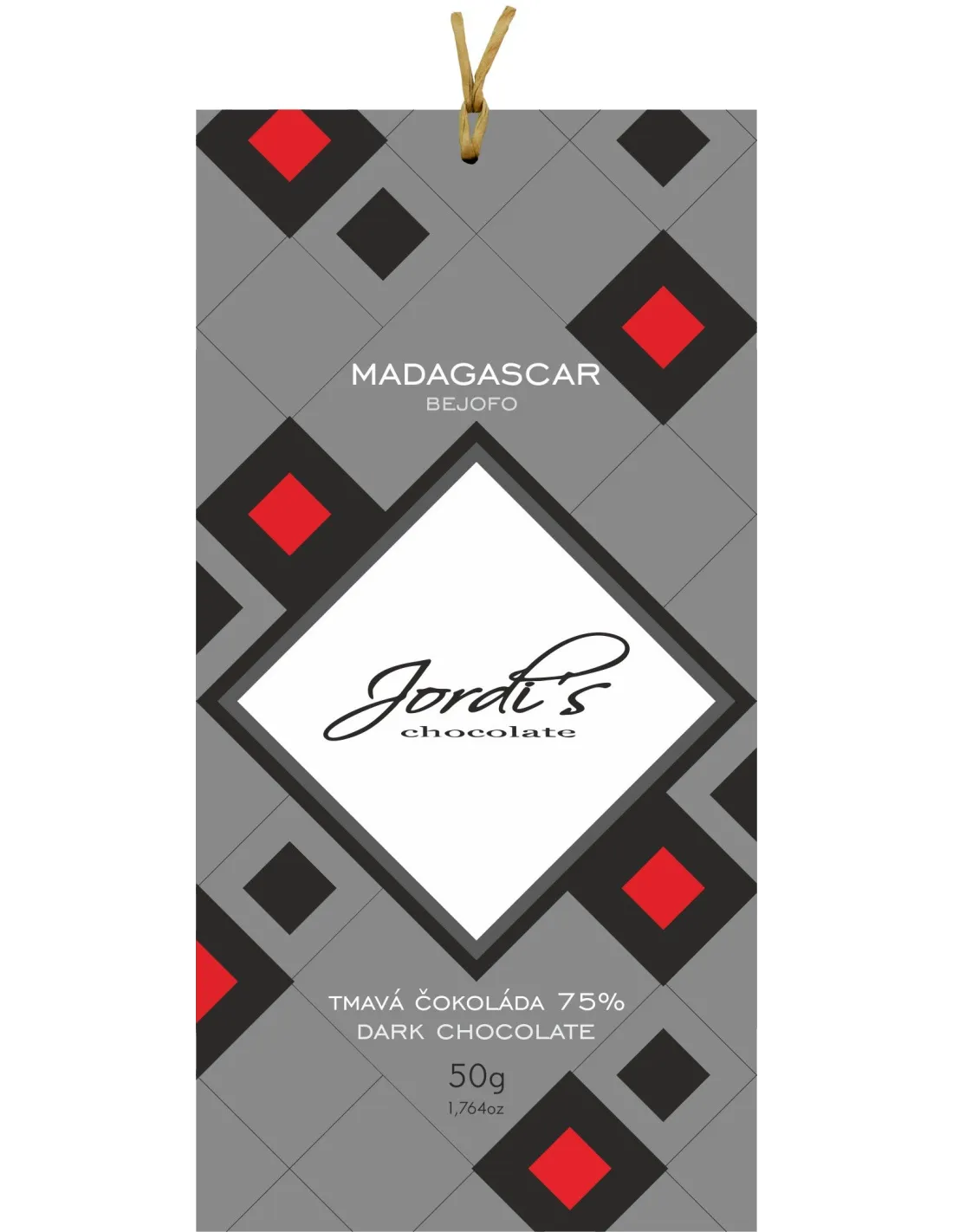 Тъмният шоколад 75 % се произвежда от мадагаскарски какаови зърна от фермата Bejofo, която има традиции от 1922 г. Тук какаото тринитарио расте под сянката на дърветата mantala и inga, които са покрити с пипери. Неповторимият вкус със сигурност ще ви допадне.