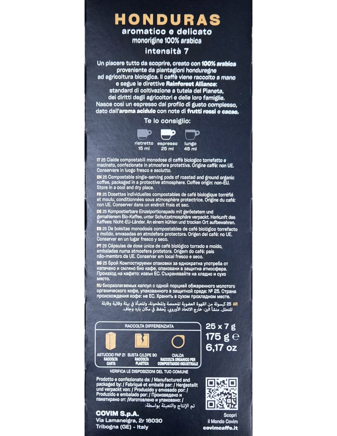E.S.E. Covim Honduras 100% Arabica Pods, 25 порции са лесен начин за получаване на постоянно кафе от качествени зърна Honduras 100% Arabica у дома или в офиса. Всяка порция е прецизно измерена за стабилна екстракция и пълен вкус.