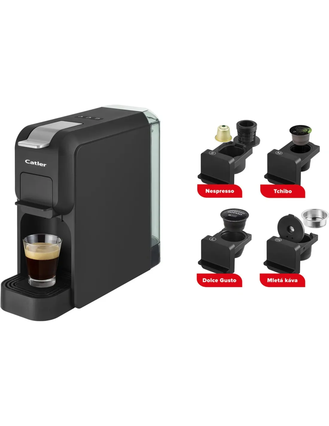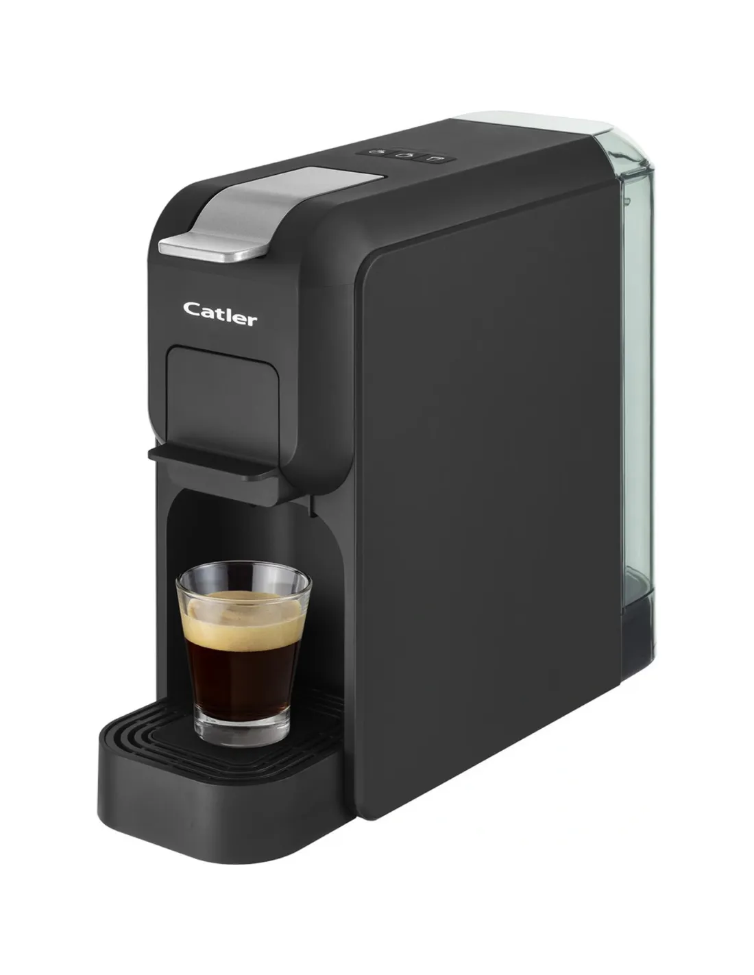 Автоматичното еспресо с налягане 15 бара в черен минималистичен дизайн произвежда кафе с богат вкус, интензивен аромат и деликатен каймак. Той е съвместим с капсули Nespresso®, Tchibo, NESCAFÉ® Dolce Gusto® и мляно кафе.
