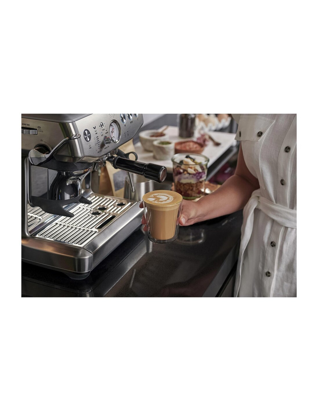 Тази лостова еспресо машина с вградена мелница пренася усещането за истинско кафене директно в кухнята ви. Благодарение на технологията Impress Puck™ = вграден тампер (изстискване на кафето в лоста ), тя се грижи както за правилното дозиране, така и за равномерното трамбоване на кафето, така че всеки път да получавате перфектно балансирана екстракция.