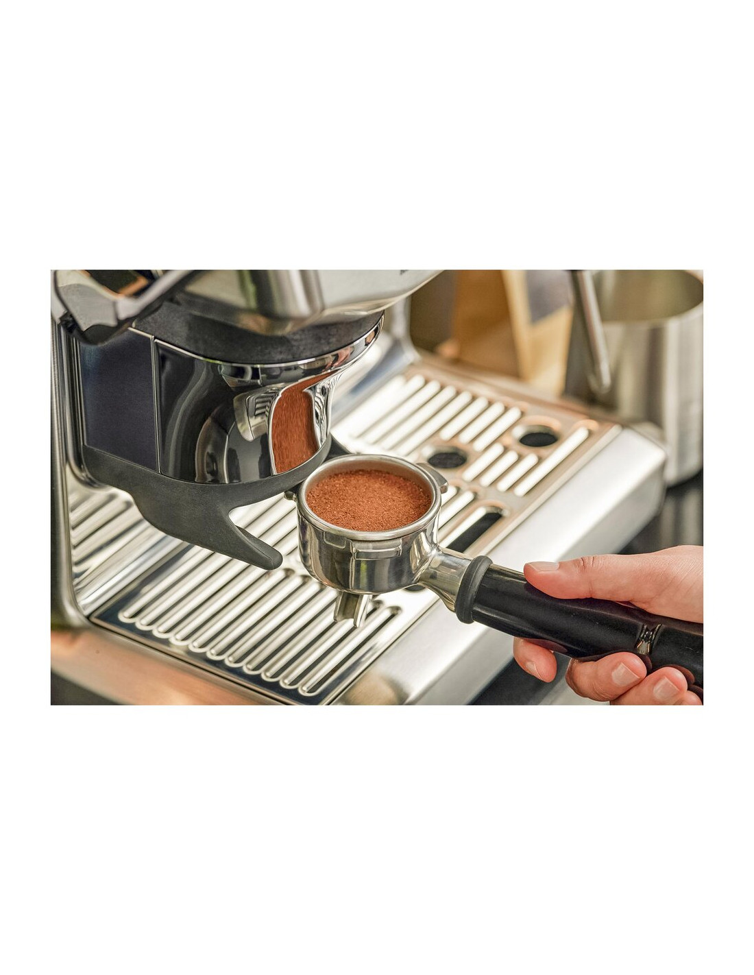 Професионално еспресо за вашия дом = кафемашина + кафемелачка + автоматичен тампер в едно