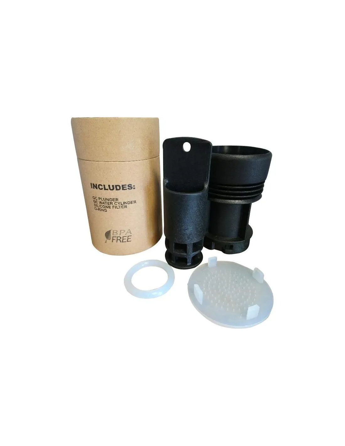Комплектът включва нов горен контейнер за вода и бутало, изработени от висококачествен стъклен композит. Те, в комбинация с новия филтър и уплътнение, осигуряват значително по-високо налягане по време на екстракцията на кафе.
