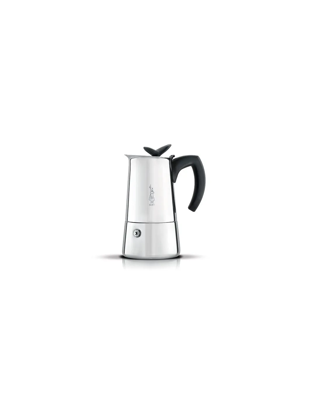 Изцяло неръждаема стилна каничка за мока Bialetti Musa Преработка от италианската компания Bialetti за традиционно приготвяне на 2 чаши по-силно кафе (около 75 мл). Не е подходяща за индукция.
