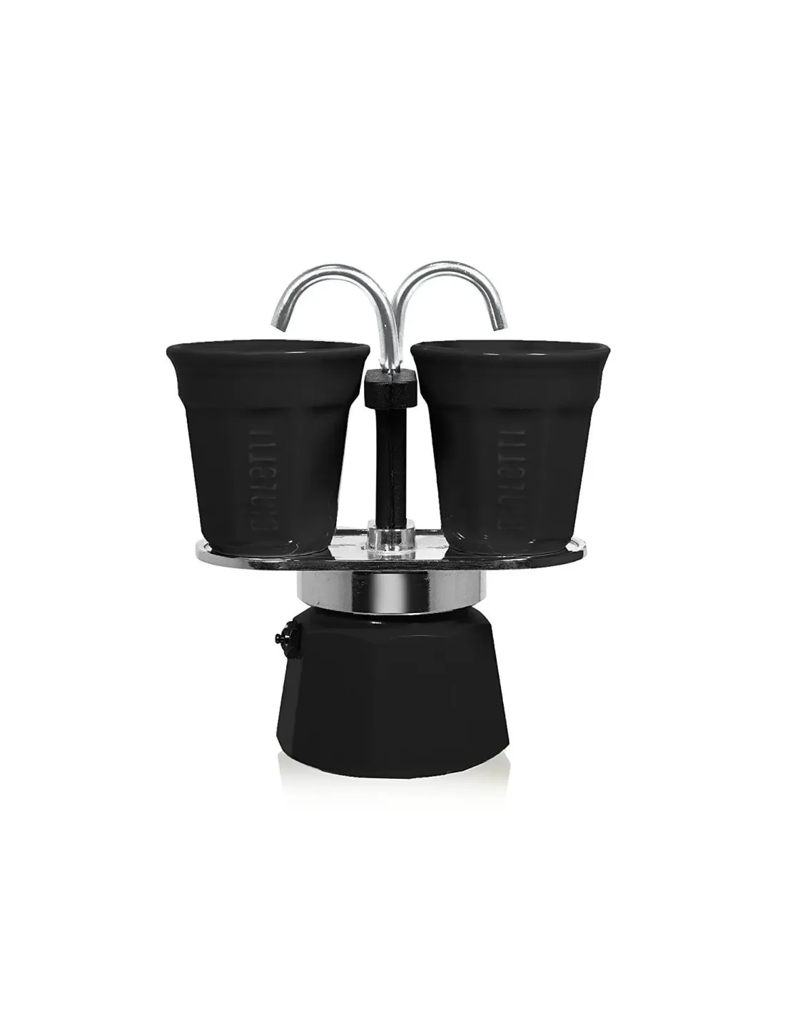 Иновативният и нетипичен мока кана Bialetti Mini Express ще приготвя 2 чаши кафе едновременно. За разлика от класическите мока-чаши, кафето тече директно в приготвените черни чаши.