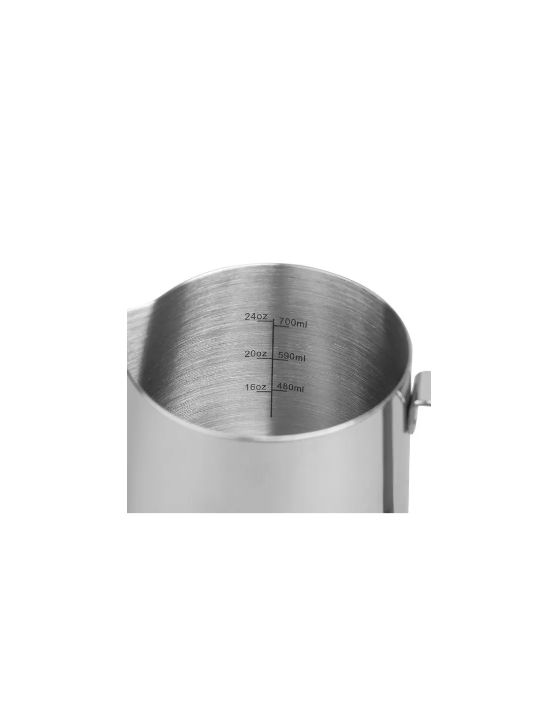 На вътрешната стена на каничката има линии от двете страни , измерващи обема в милилитри и унции. Това ви дава възможност да отмервате точното количество мляко, за да избегнете ненужните отпадъци. Линиите измерват до 700 ml, като ви оставят достатъчно място за разпенване на млякото и постигане на възможно най-добрата текстура.