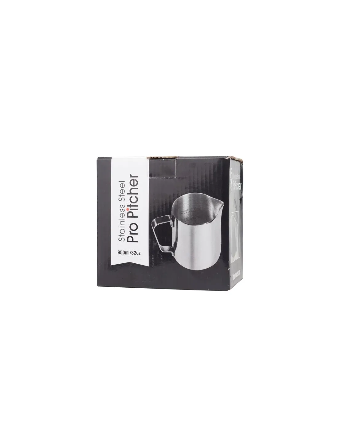 Професионална кана за мляко на Rhinowares, изработена от неръждаема стомана с дебелина 1 мм и с вместимост 950 мл.