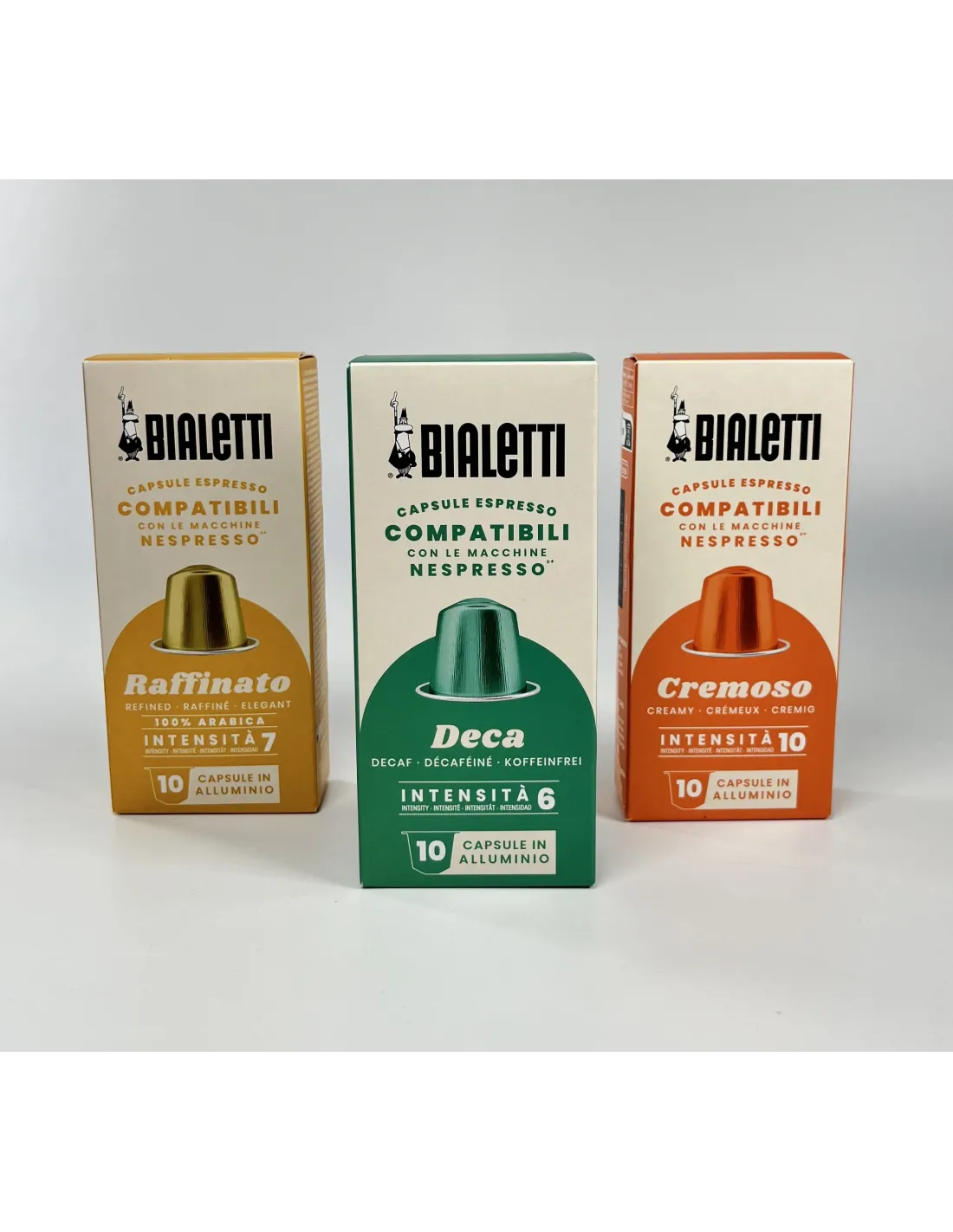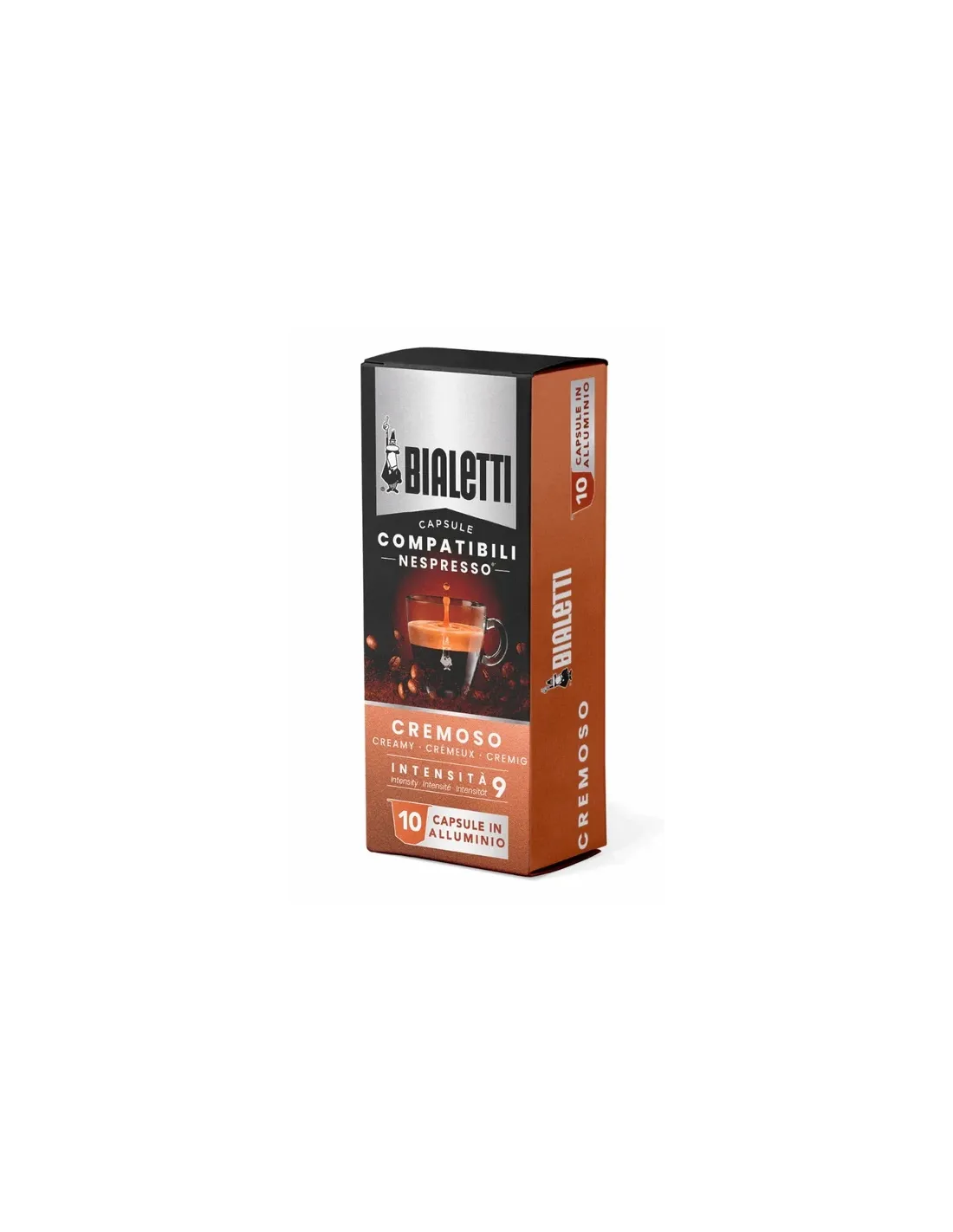 Bialetti Nespresso® капсули Cremoso-Италианскокафе без компромиси! То носи богатия вкус на истинско италианско еспресо с много кремообразен вкус. Благодарение на тъмното изпичане кафето запазва интензивността и пълния си аромат, така че можете да се насладите на перфектната чаша по всяко време на деня.