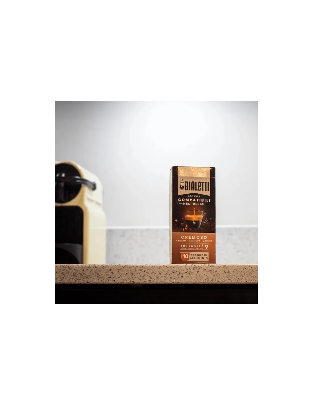 Капсули Bialetti Nespresso® Cremoso - истинско италианско кафе с тъмно изпичане, което е много кремообразно. Идеално за приготвяне в машините Nespresso, където ще се насладите на пълния вкус и интензивен аромат.