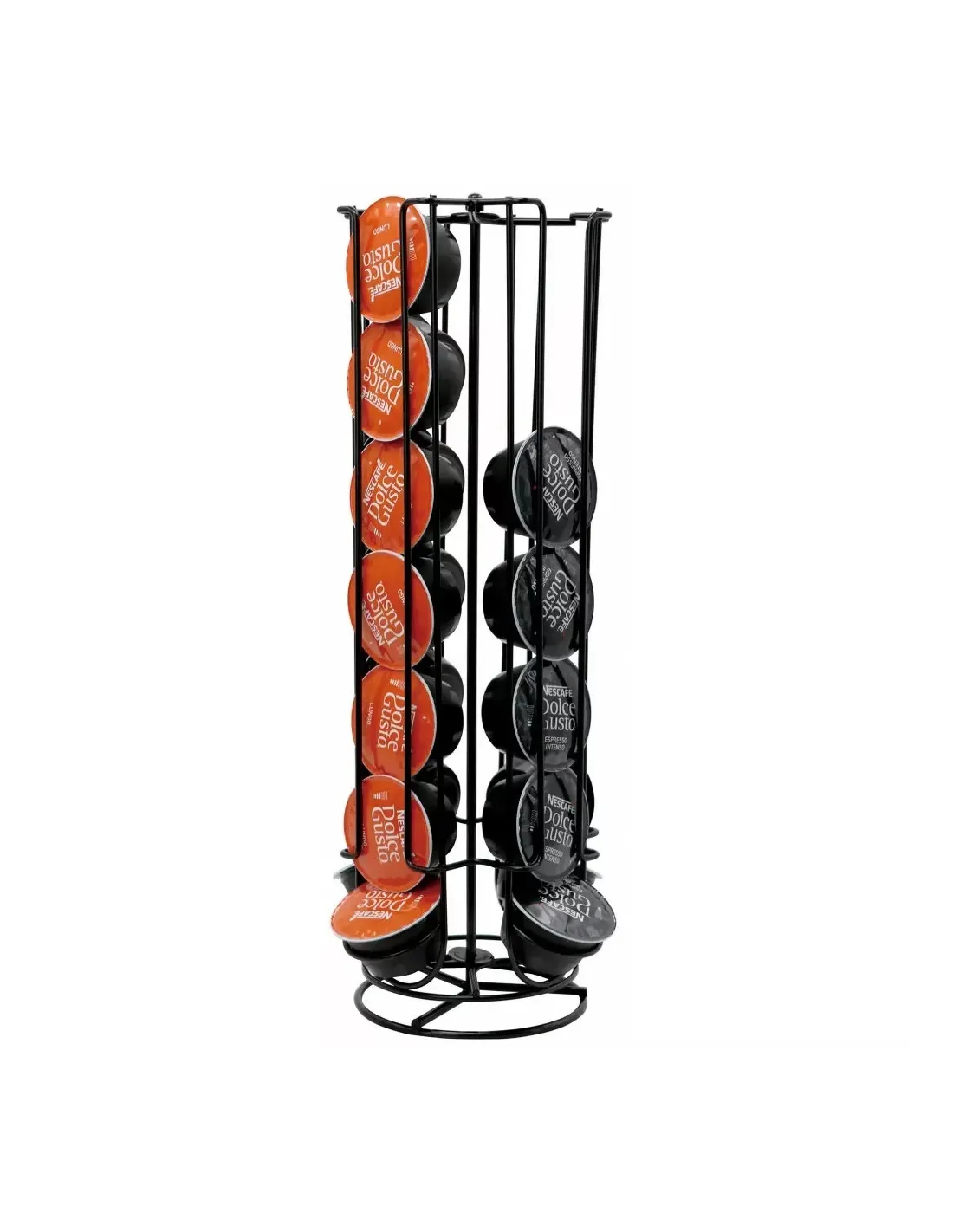 Благодарение на 360-градусовото завъртане всички капсули са винаги под ръка, независимо дали ги използвате в кухнята или в офиса. Тя е идеална за поддържане на ред на кухненския плот и спестява място, без да губи функционалност. С капацитет за до 28 капсули Dolce Gusto, тя е достатъчно просторна, но и достатъчно компактна, за да не заема прекалено много място. Тази поставка не само ще улесни достъпа до любимото ви кафе, но и ще добави нотка стил в кухнята или офиса ви.