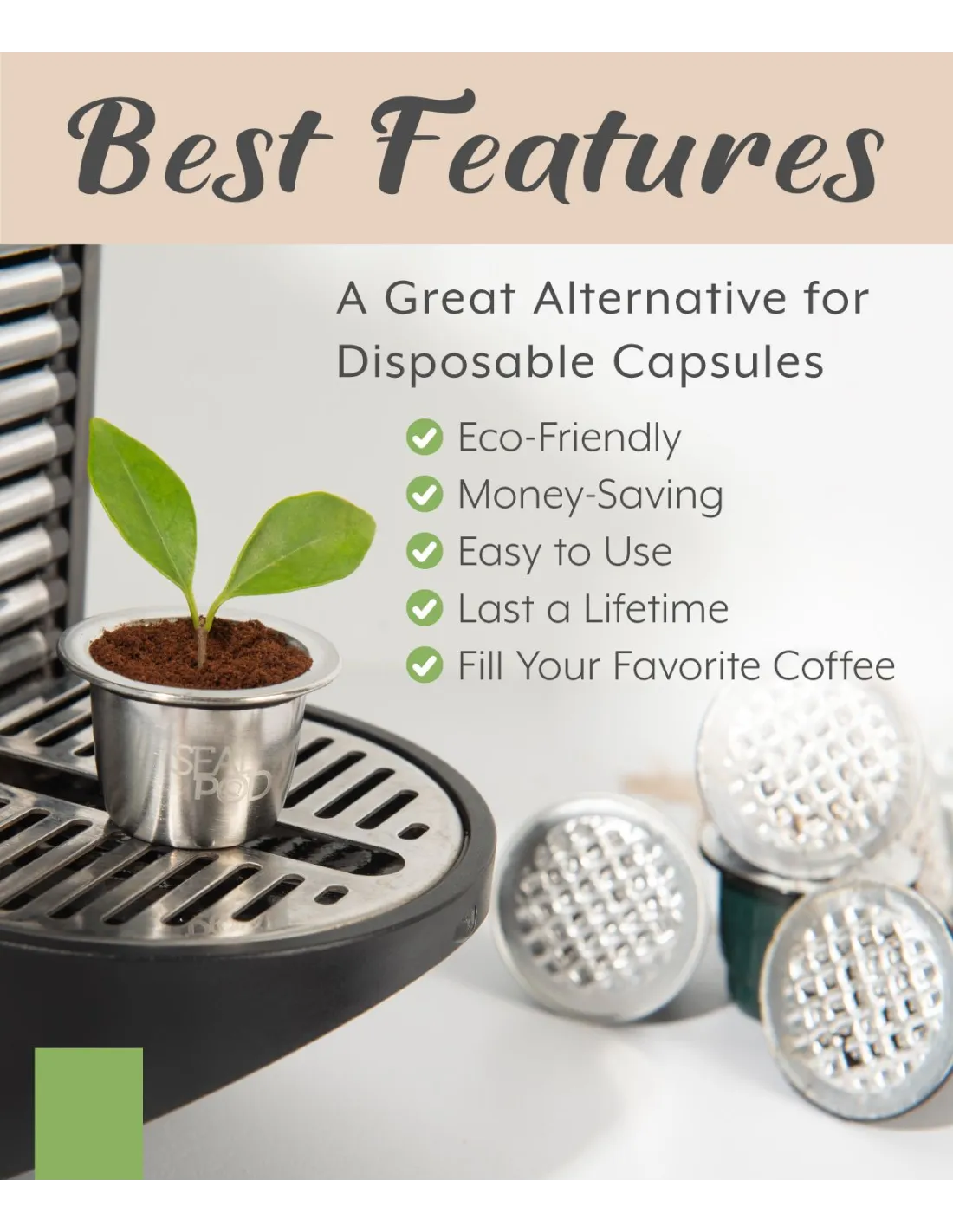 Екология Капсулата Sealpod е не самопо-икономичен, но и по-екологичен вариант за приготвяне на прясно кафе. Вече няма да се налага всеки път да изхвърляте използваната капсула в кошчето за боклук, което ще има положителен ефект върху околната среда.