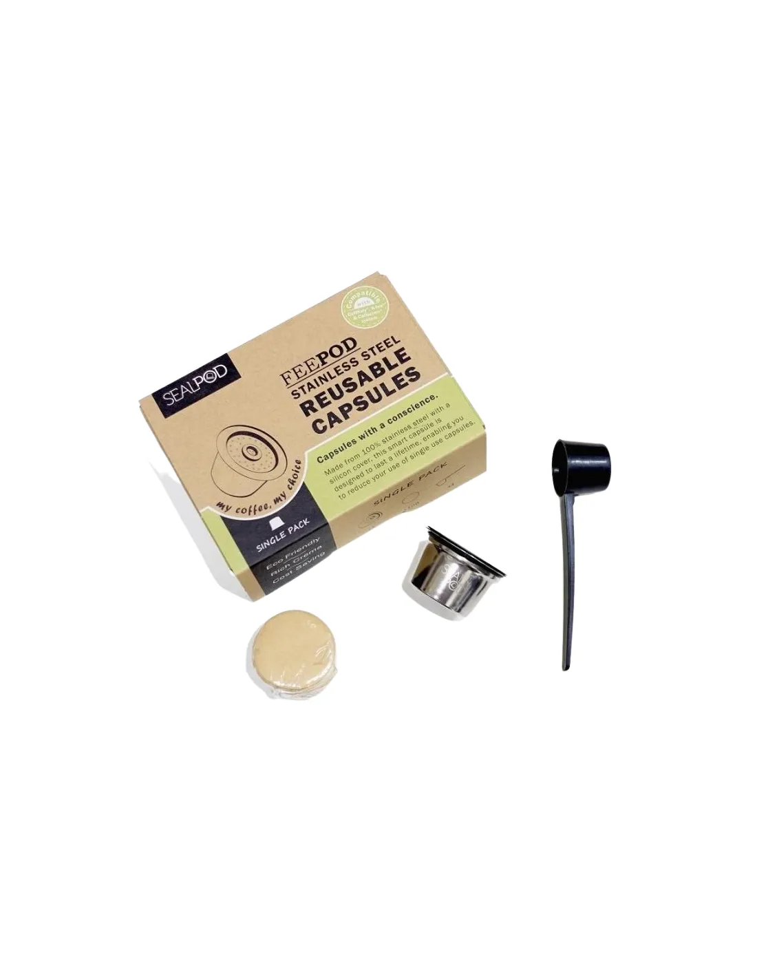 В сравнение с пластмасовите капсули за многократно пълнене, капсулата Sealpod от неръждаема стомана има неограничен срок на годност. Така че можете да пълните капсулата неограничено, тя няма да се развали по никакъв начин. Капсулата се затваря със силиконова капачка, която също не е ограничена от броя на употребите благодарение на модифицирания отвор за иглата на кафемашината. С капсулата за многократно пълнене определено ще спестите пари.