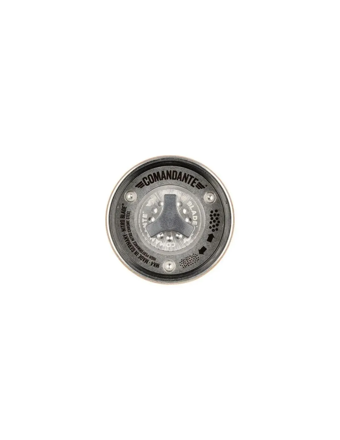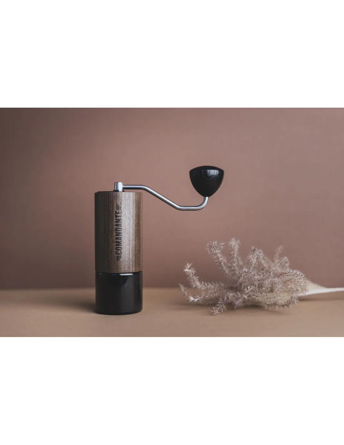 Мелничката има и уникален дизайн. За производството на мелницата са използвани висококачествени материали, така че не само мелещите камъни, но и корпусът, оста, манивелата и микросачмените лагери са от неръждаема стомана. Продуктите на Comandante не съдържат алуминий. Там, където могат да се използват полимери за подобряване на производителността, Comandante използва висококачествени полимери без BPA, които отговарят на най-строгите стандарти за безопасност на храните. Тези материали са проектирани да издържат години на строга употреба. Comandante обича естественото дърво. Дръжката от дъбово дърво е чудесно ергономична и красива за гледане.