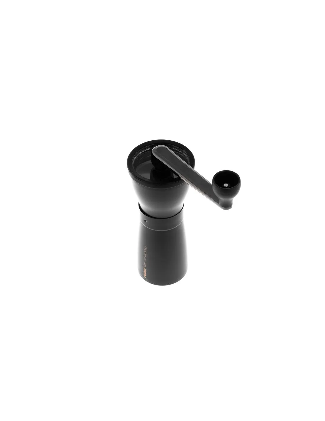Разликата от оригиналната версия е главно в изцяло неръждаемия масивен корпус, който ще ви очарова с елегантния си черен матов цвят. Друга промяна е вподобрената здрава дръжка, за разлика от предшественика си Mini Slim PRO има дръжка за мелене, завършена с шестоъгълник, тя е по-издръжлива и по-добре предава вашата сила към мелещите камъни, като по този начин осигурява по-равномерно смилане на кафето и по-дълъг живот на мелничката. Ще забележите разликата и в прозрачния силиконов капак, който е покрит със защитен черен силикон по периметъра, и лесния за разделяне контейнер за смляно кафе.