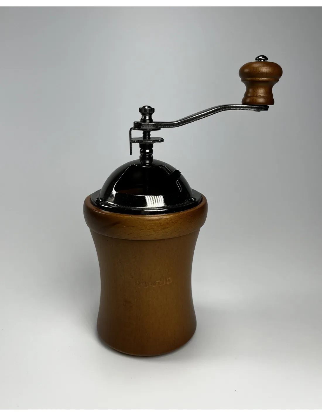 Смляното кафе попада в долната част на дървения корпус на мелничката, който побира до 35 г смляно кафе.