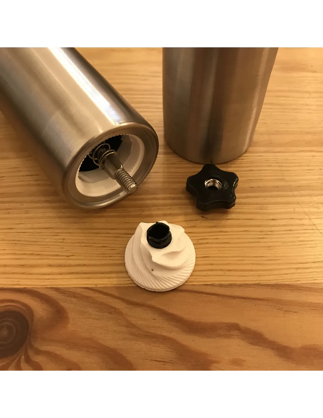Камъните за мелене са изработени от керамика , която е много нежна към кафето. На мелачката можете лесно да регулирате едрото на смилане от фино до грубо . Мелничката пасва перфектно на AeroPress .