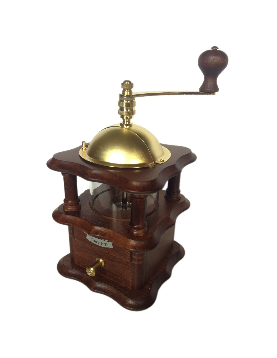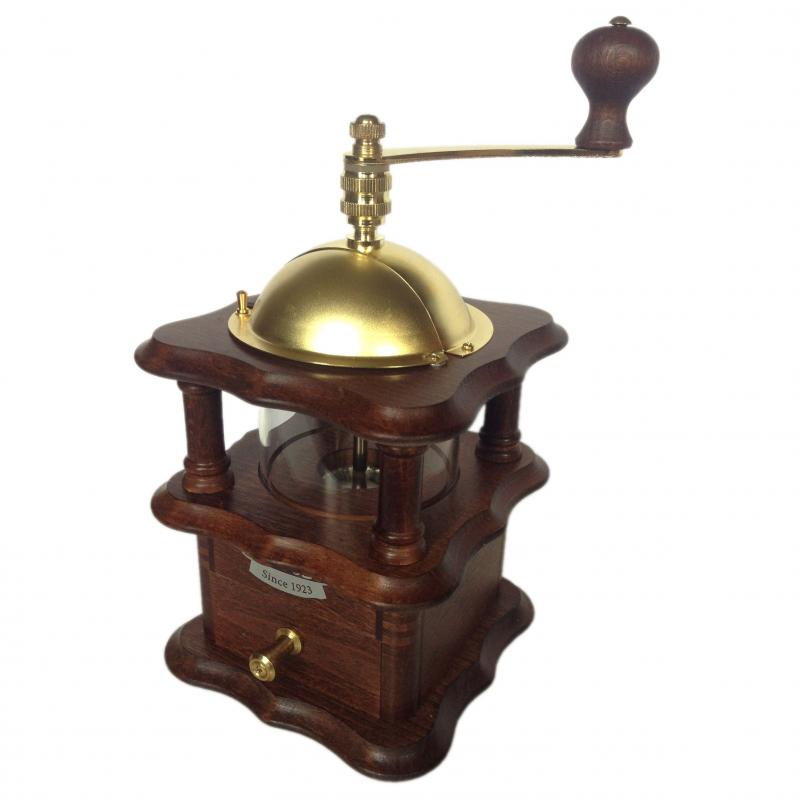 Кафемелачка Lodos Nostalgie, изработена от тъмно буково дърво, с интересен прозорец за кафе и 10-годишна гаранция от традиционната чешка компания Lodos.